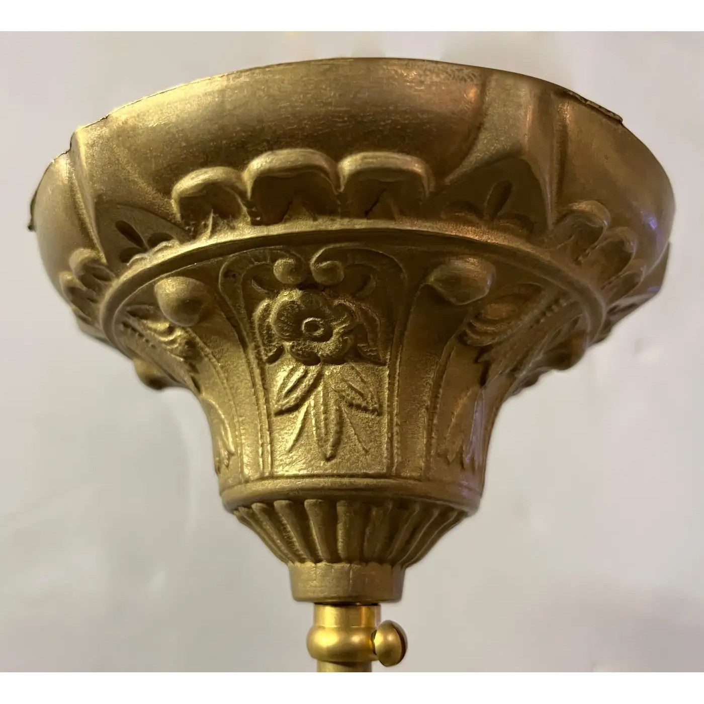 1930 French White Turquoise Pink Enamel Art Glass Brass Chain Pendant Chandelier