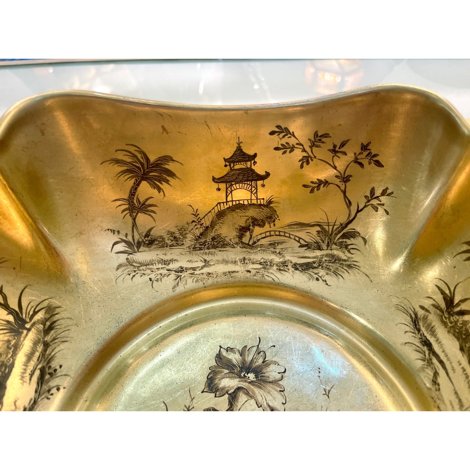 1959 French Black Gold Gilt Porcelain Gold Bowl Spool Signed