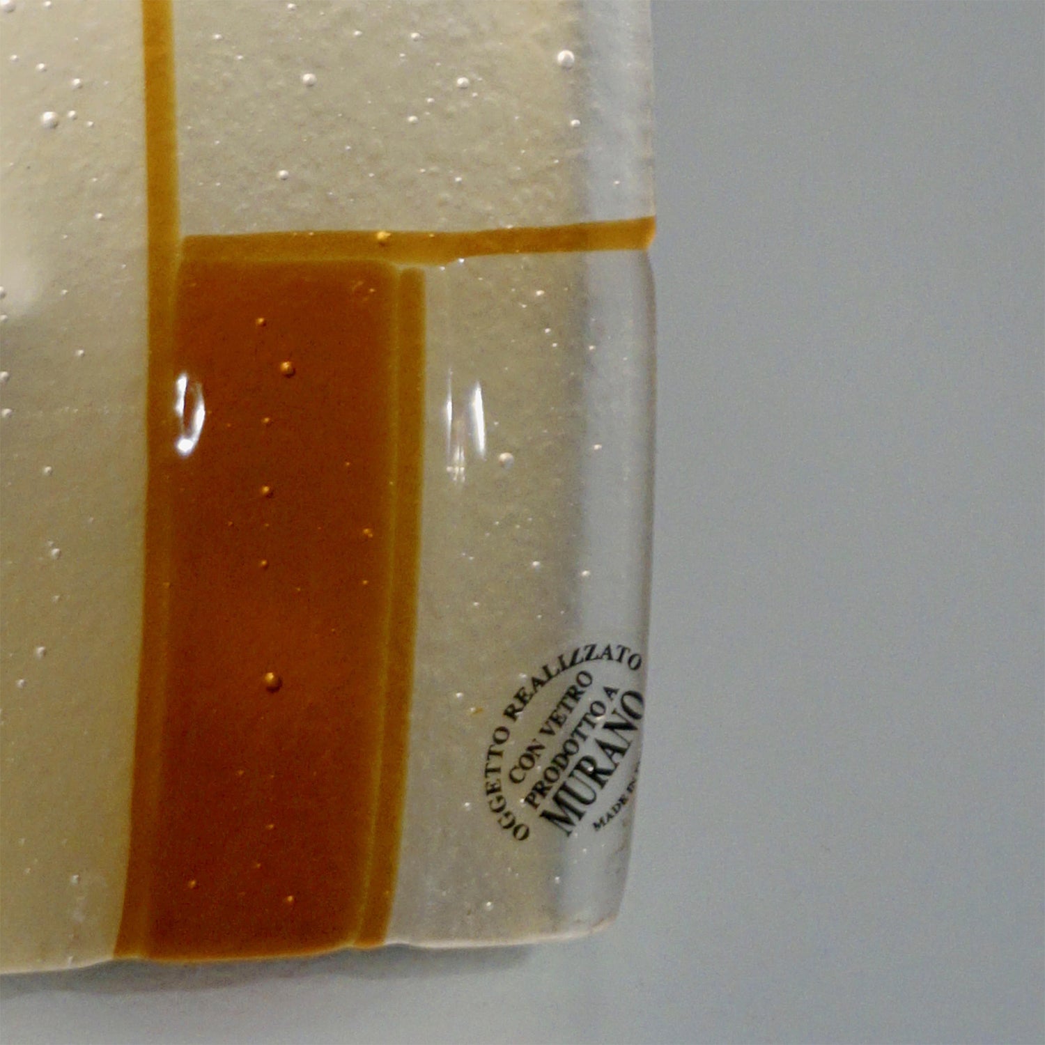 1960s Italian Orange Ivory Murano Glass Mondrian Design Flushmounts or Sconces