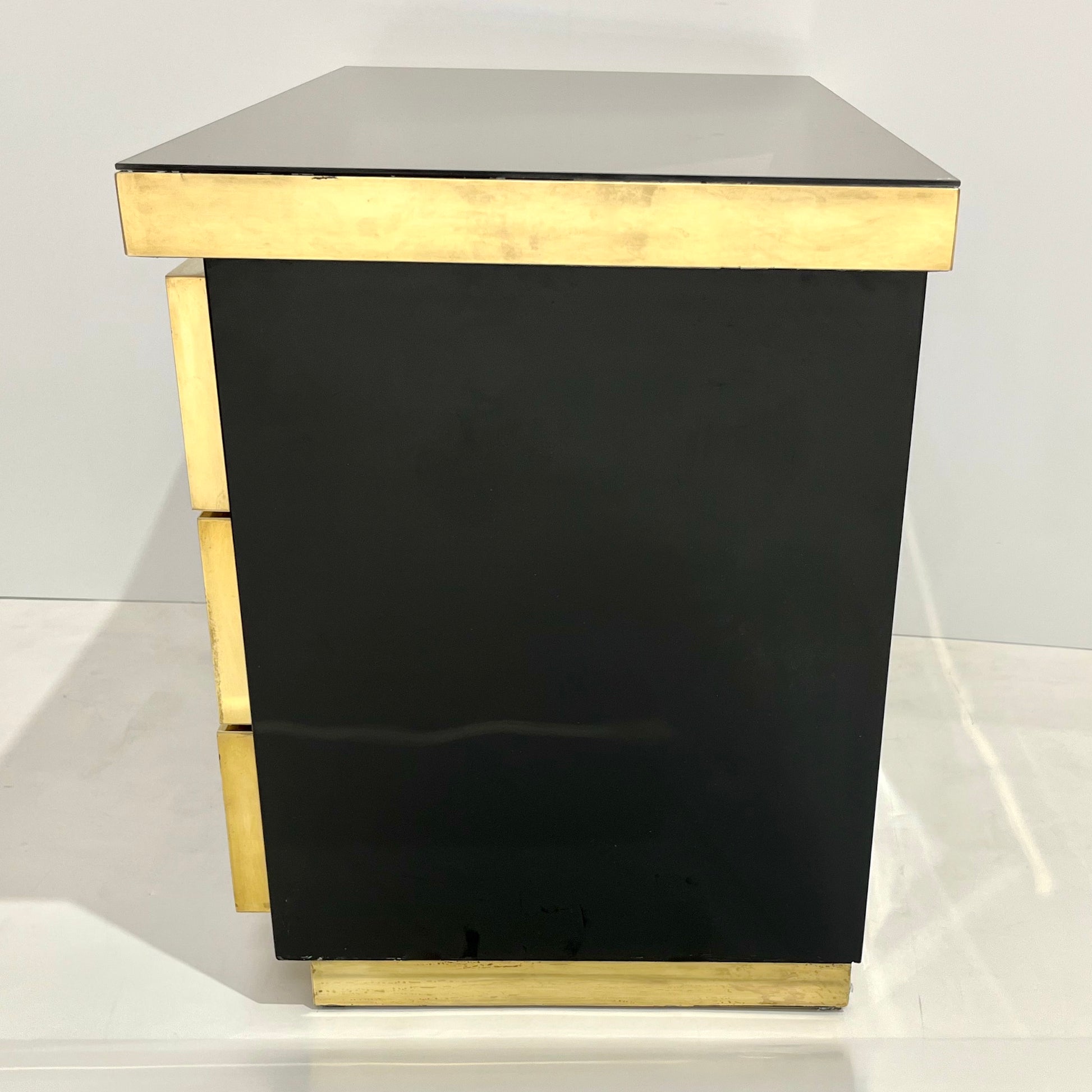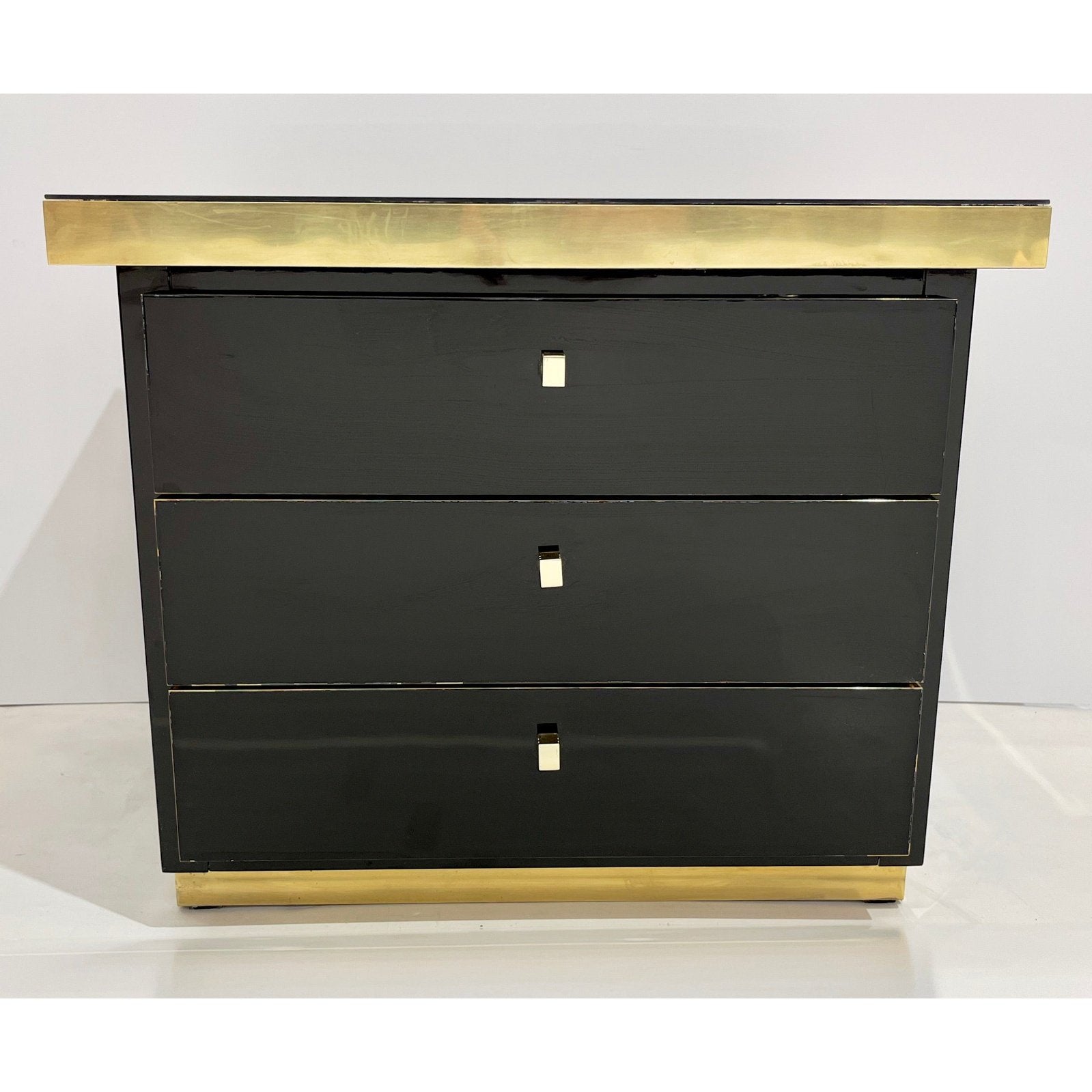 1970 Italian Vintage Brass Black Lacquer 3-Drawer Pair of NightStands/Sidetables