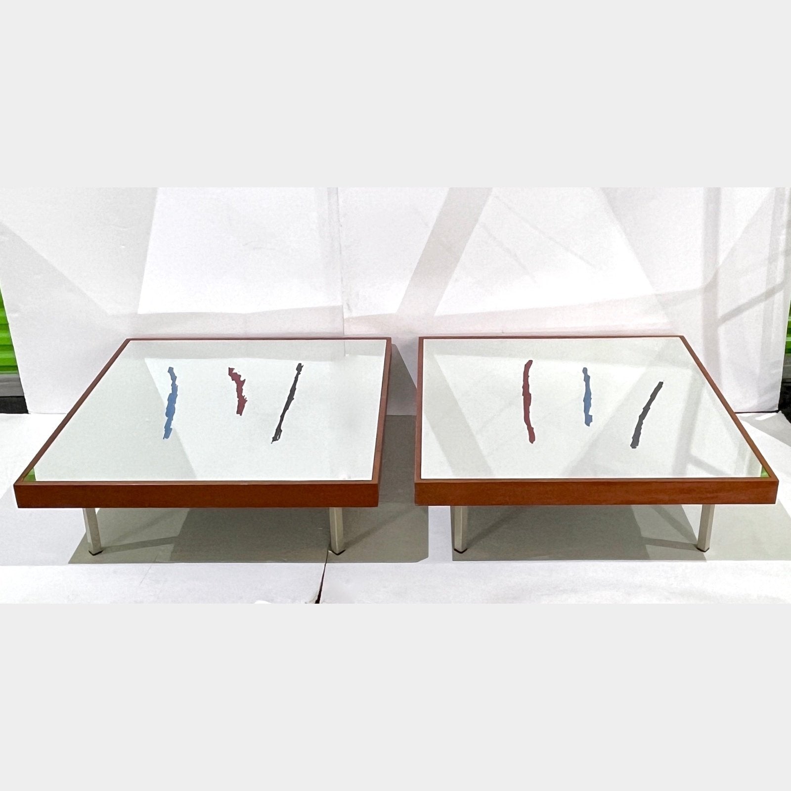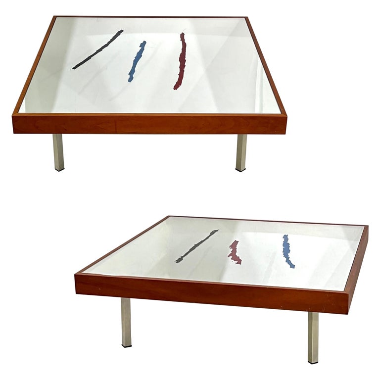 1970s Italian Post-Modern Pair of Mirrored Cherry Wood Eglomise Coffee Tables
