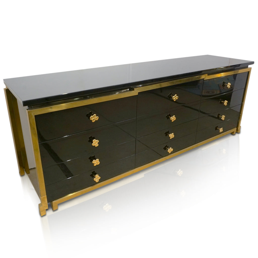1970s Italian Vintage Studio A Brass & Black Lacquer 12-Drawer Dresser/Sideboard