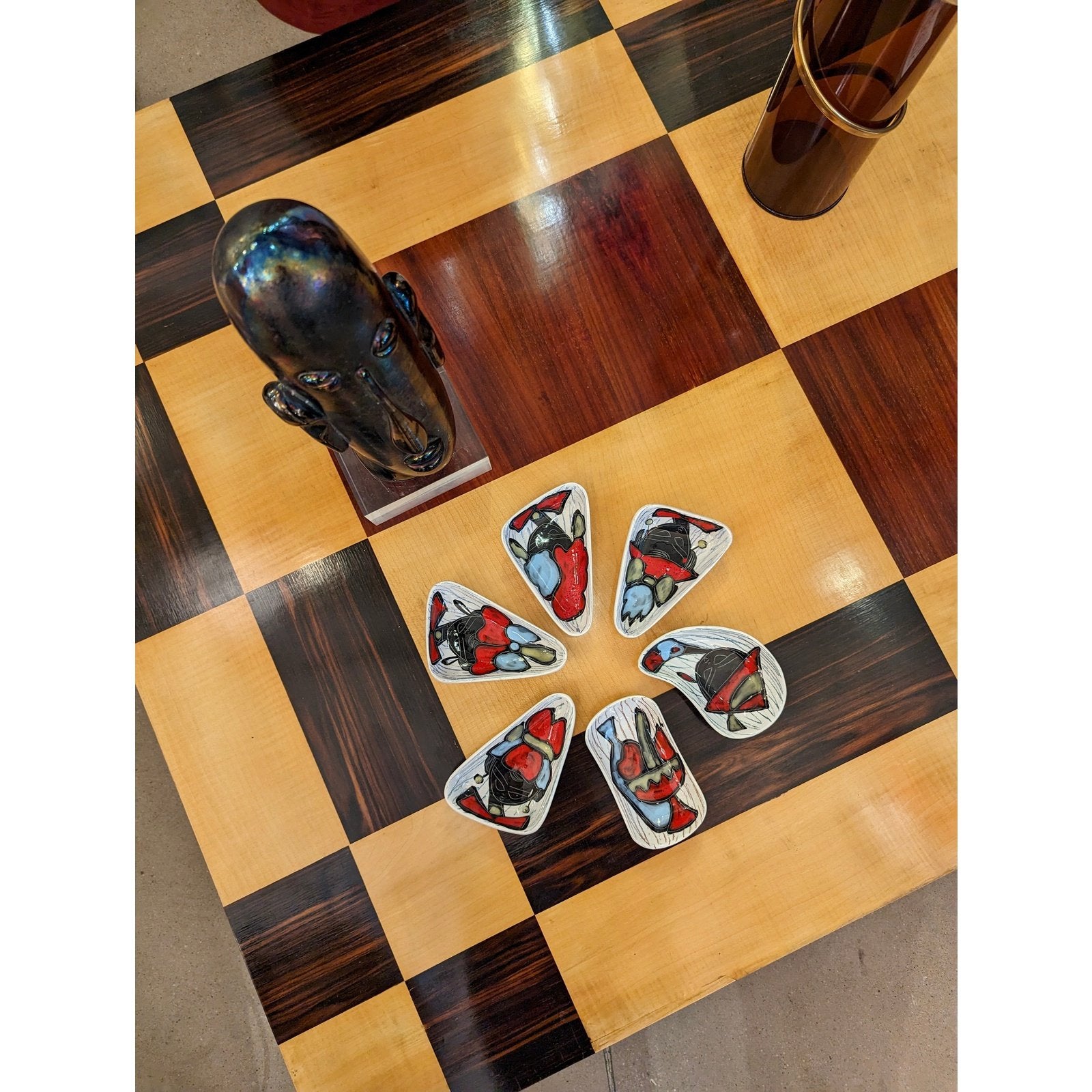 1970s Italian Vintage Walnut Cherrywood Maple Geometric Center Coffee Table