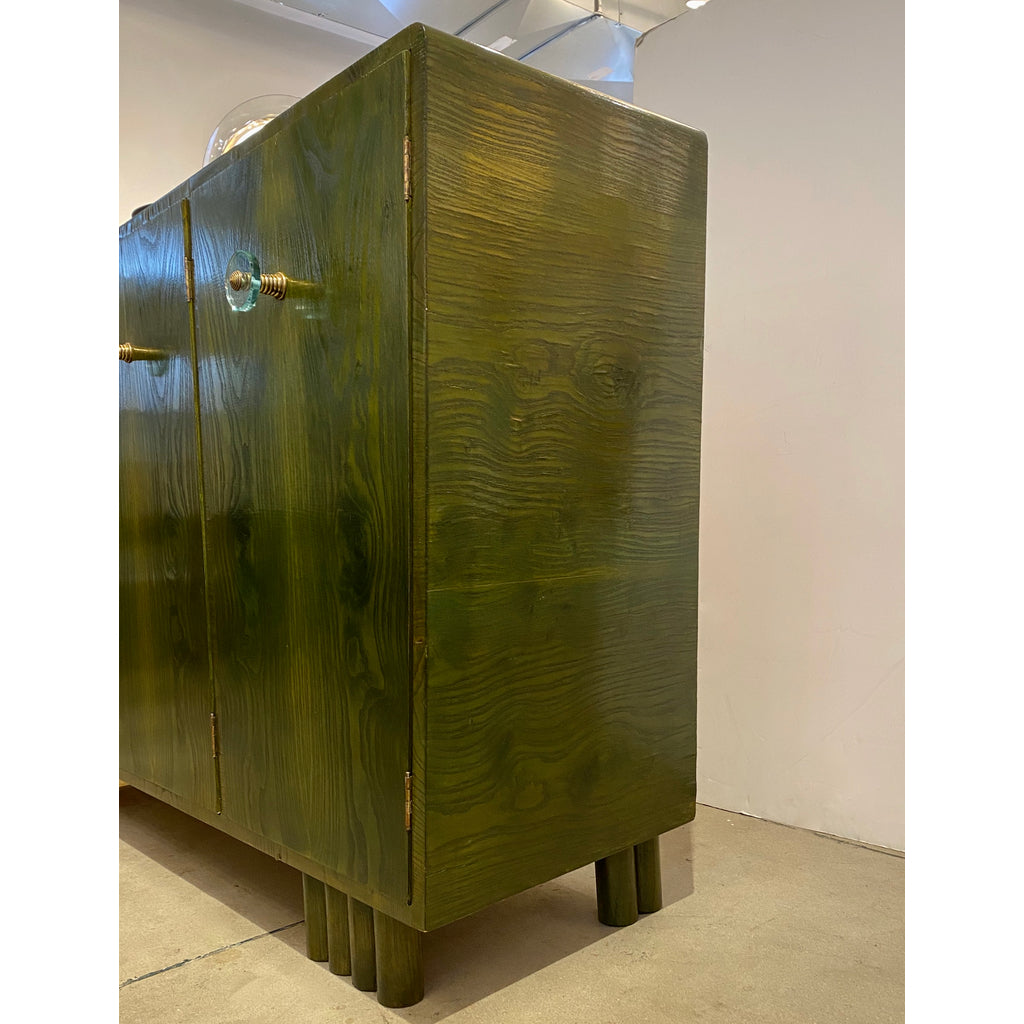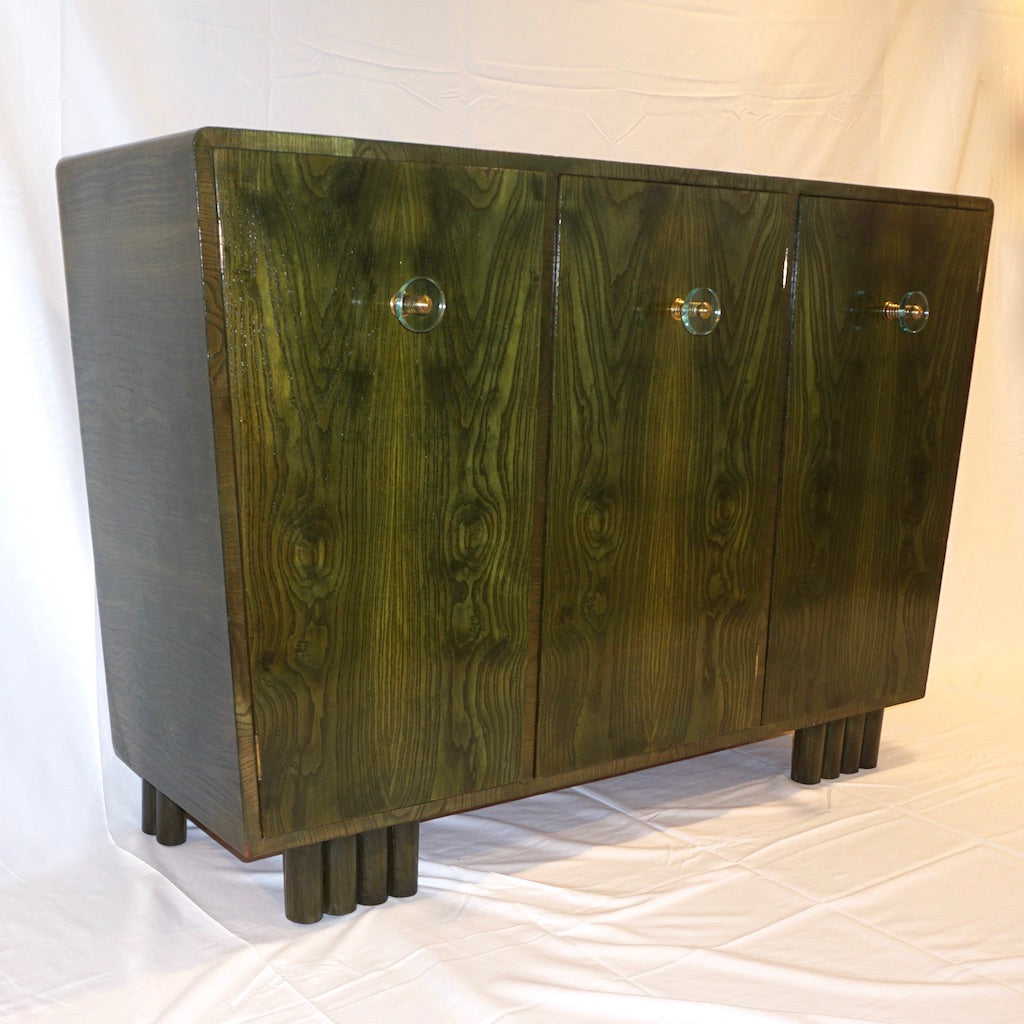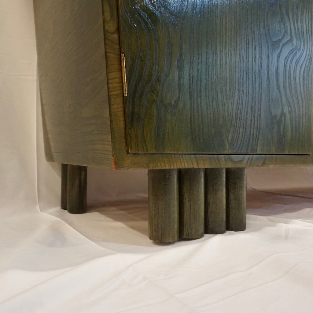1970s Italian Ash Wood Green Malachite Pigmented Triangular Postmodern Cabinet