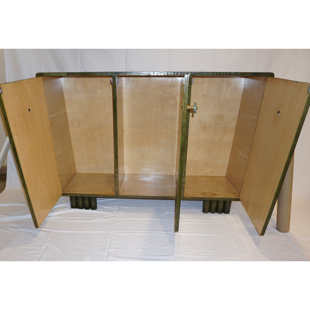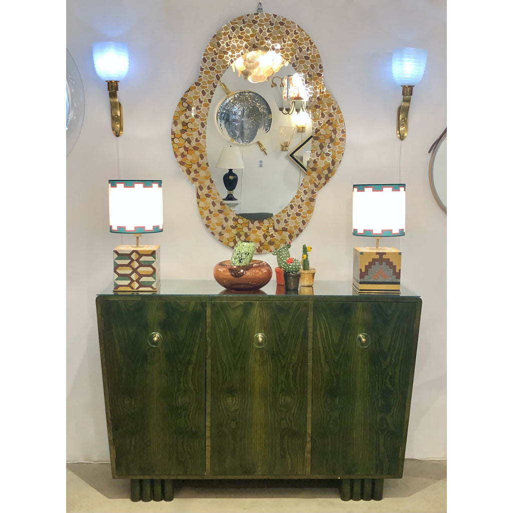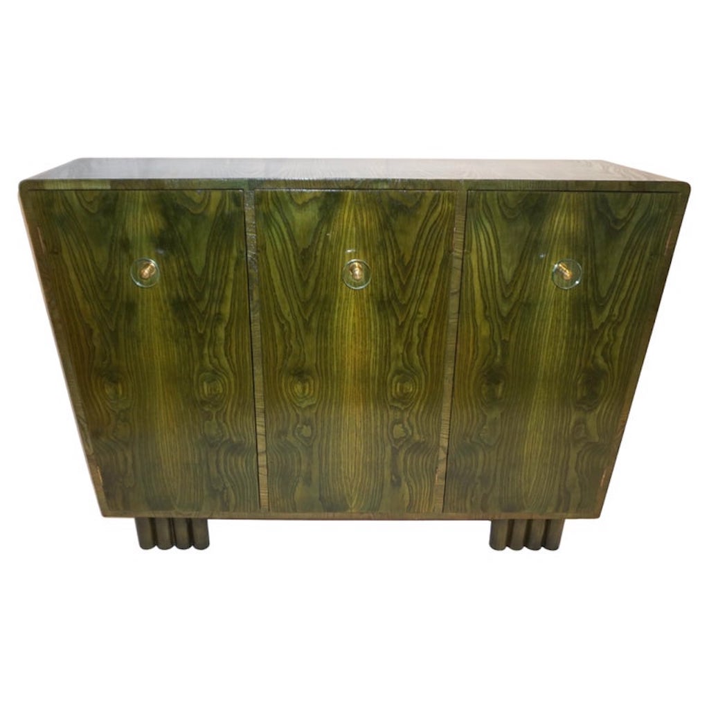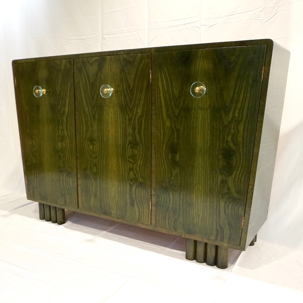 1970s Italian Ash Wood Green Malachite Pigmented Triangular Postmodern Cabinet