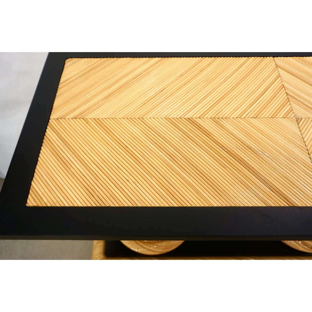 1970s Howard Dilday Organic Rattan Console Table with Black Lacquer Border