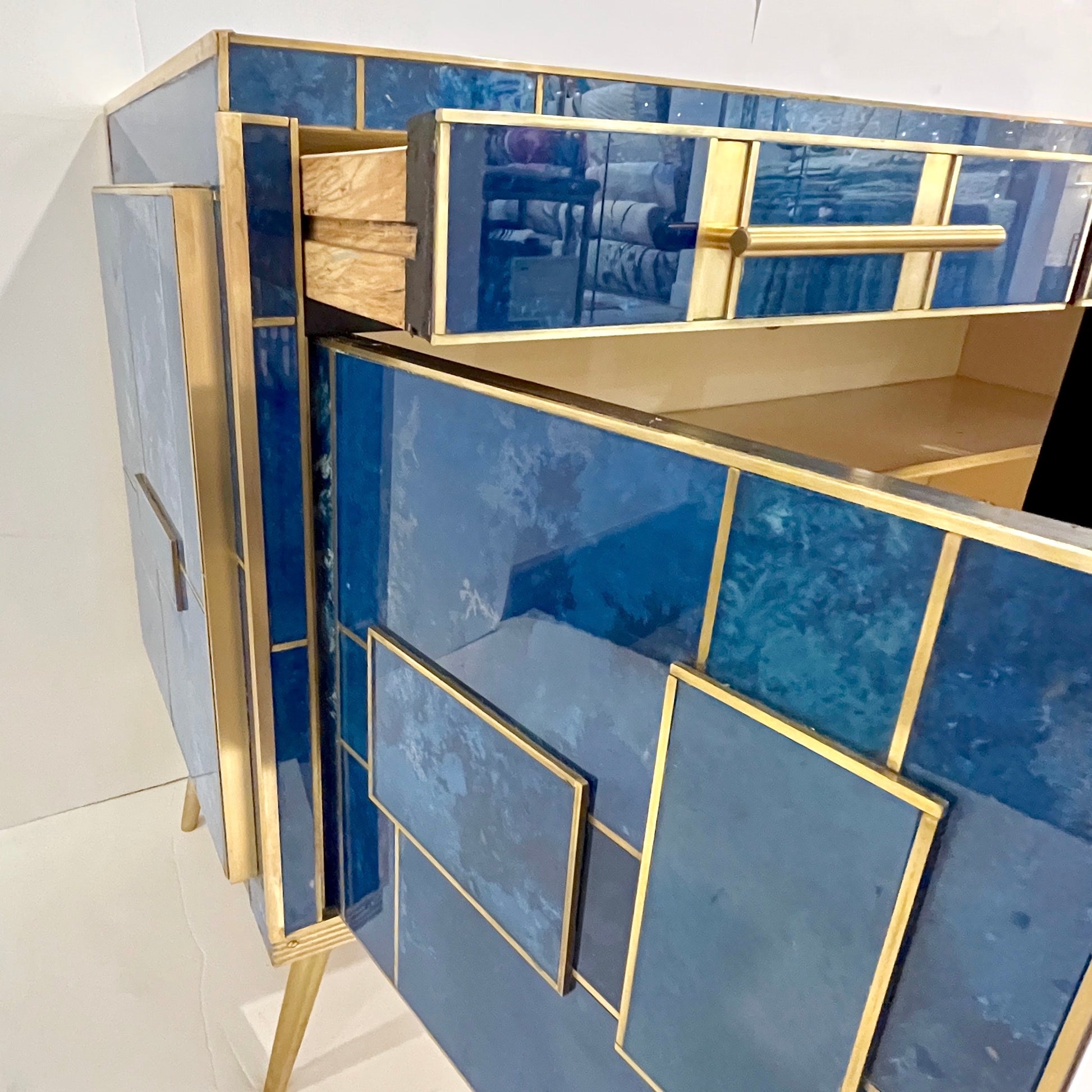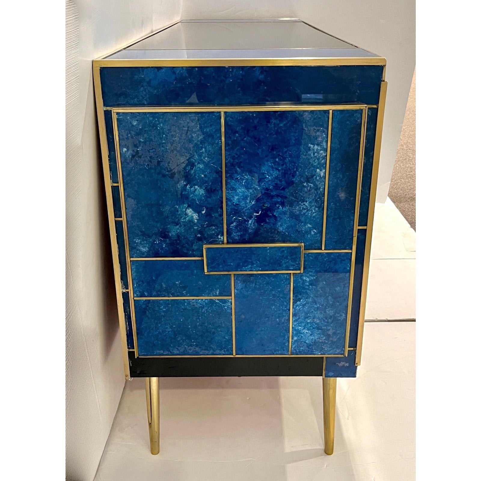 1980s Italian Post Modern Vintage Blue Black Brass 3-Door 3-Drawer Cabinet