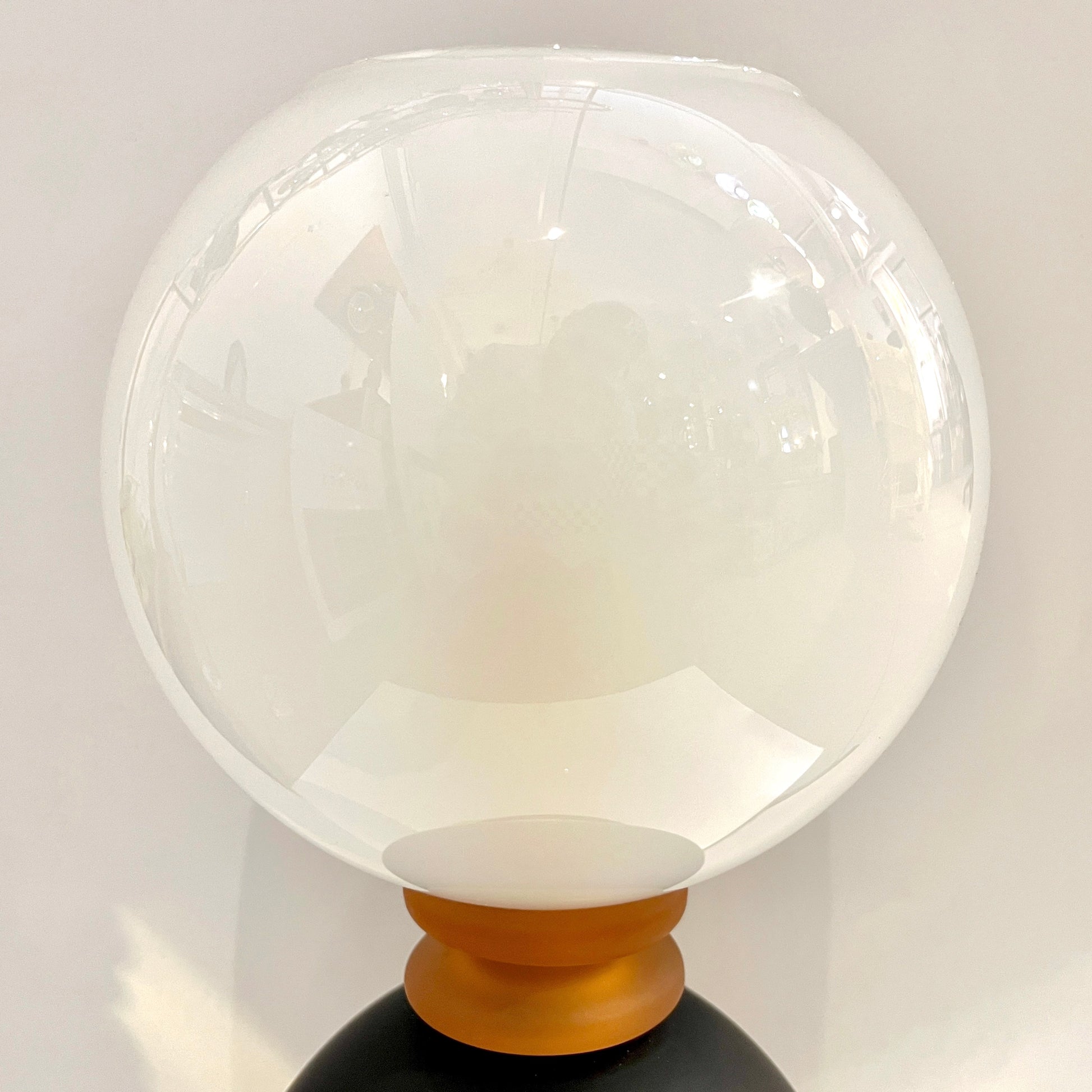 1980s Vintage Italian Pair of Frosted White Matte Black Glass Sphere Table Lamps