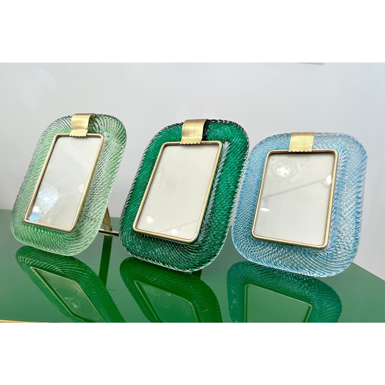 2000s Barovier Toso Italian Chartreuse Green Murano Glass Brass Picture Frame