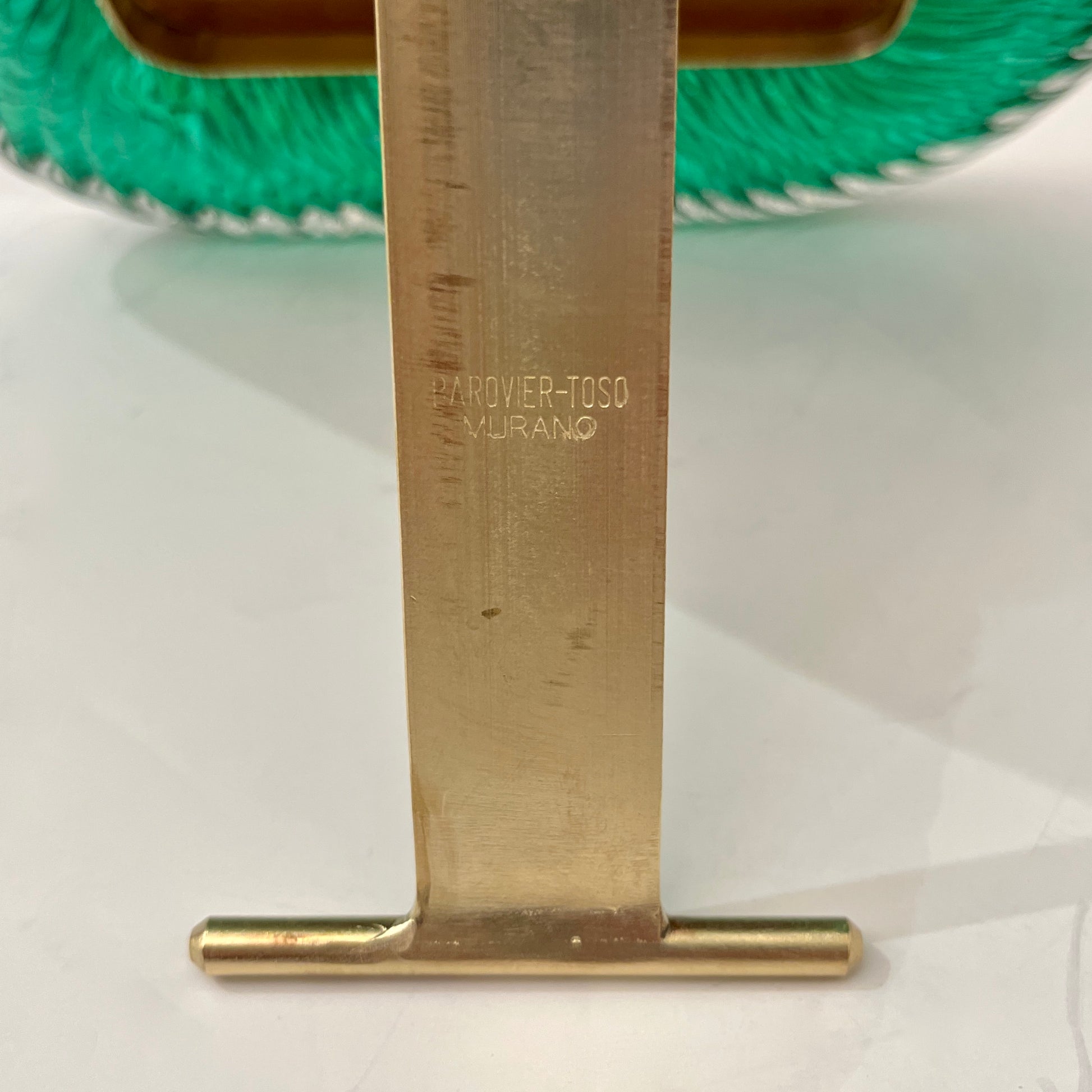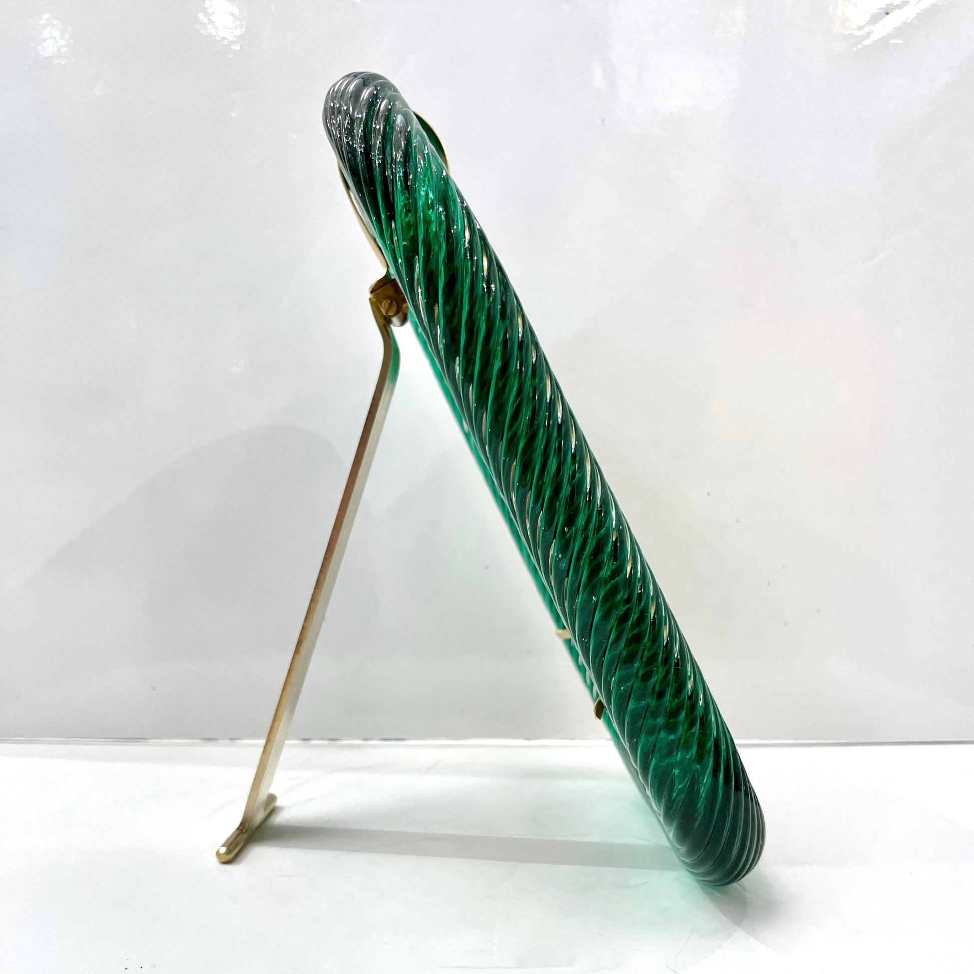 2000s Barovier Toso Italian Dark Hunter Green Murano Glass Brass Picture Frame