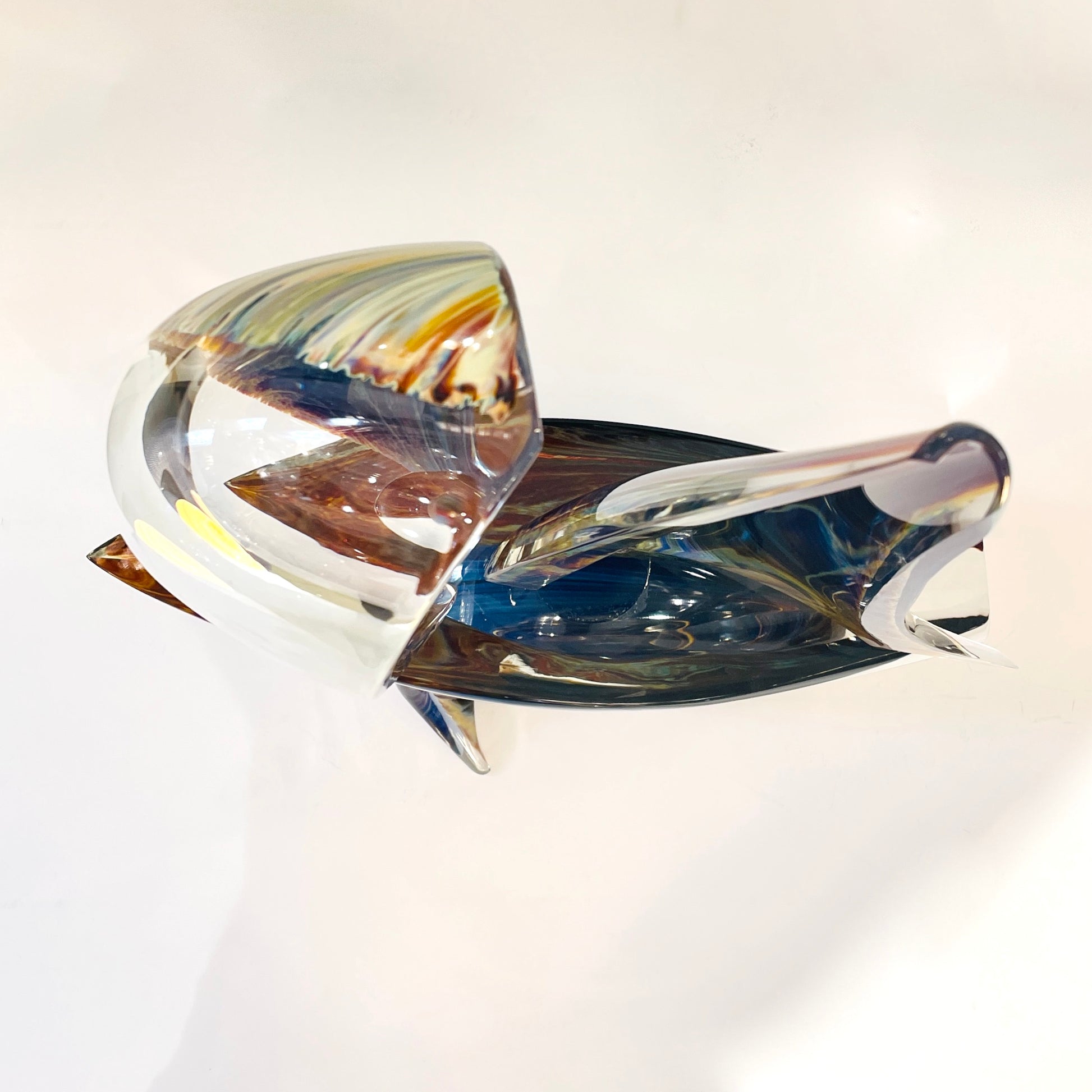 2015 Italian Yellow Blue Brown Crystal Murano Glass Boat Modernist Art Sculpture