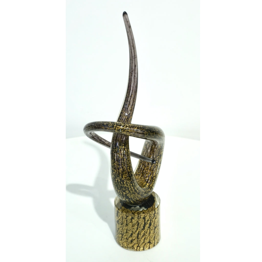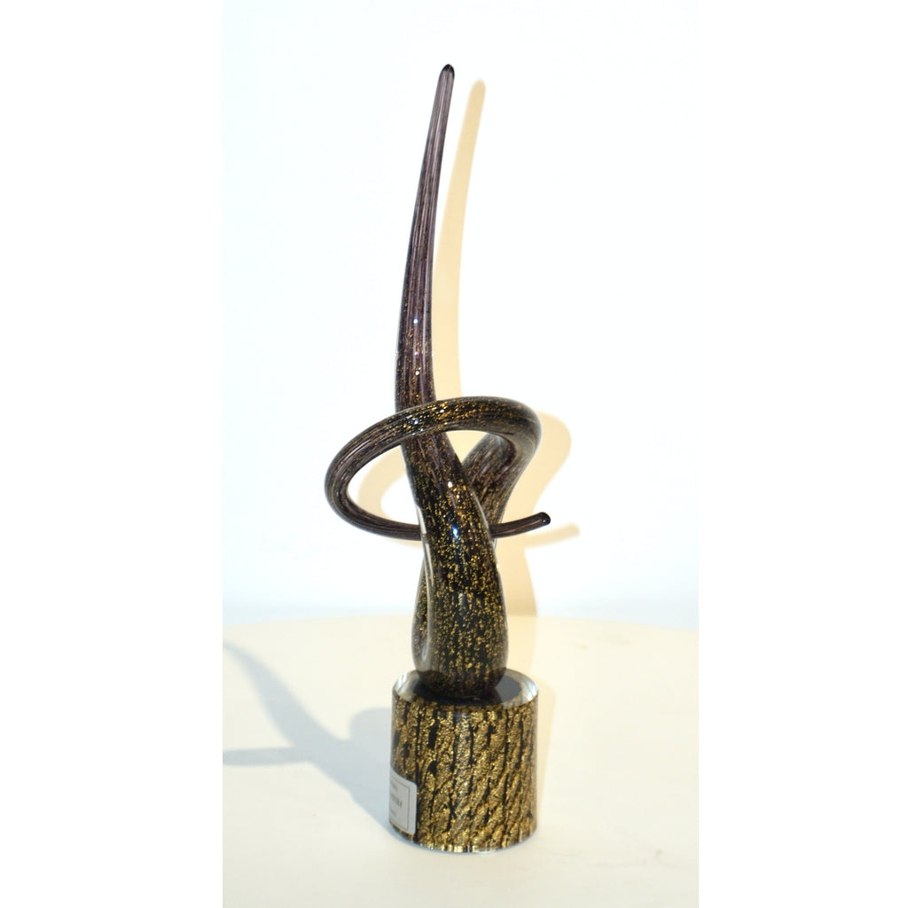 2018 Italian Organic Purple & Gold Murano Glass Abstract Twisted Curl Sculpture