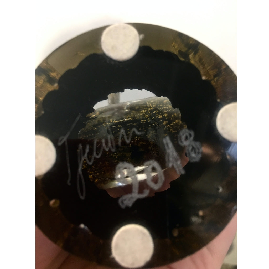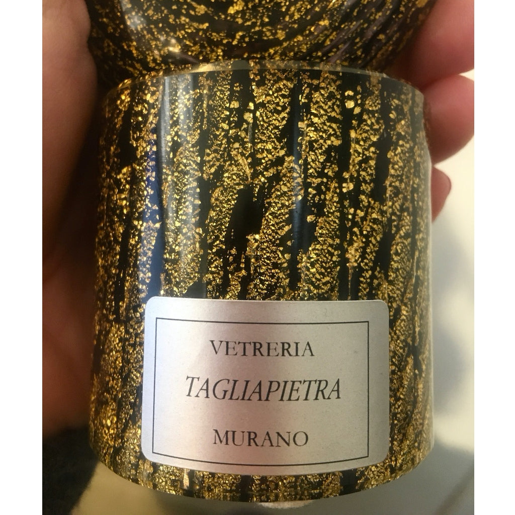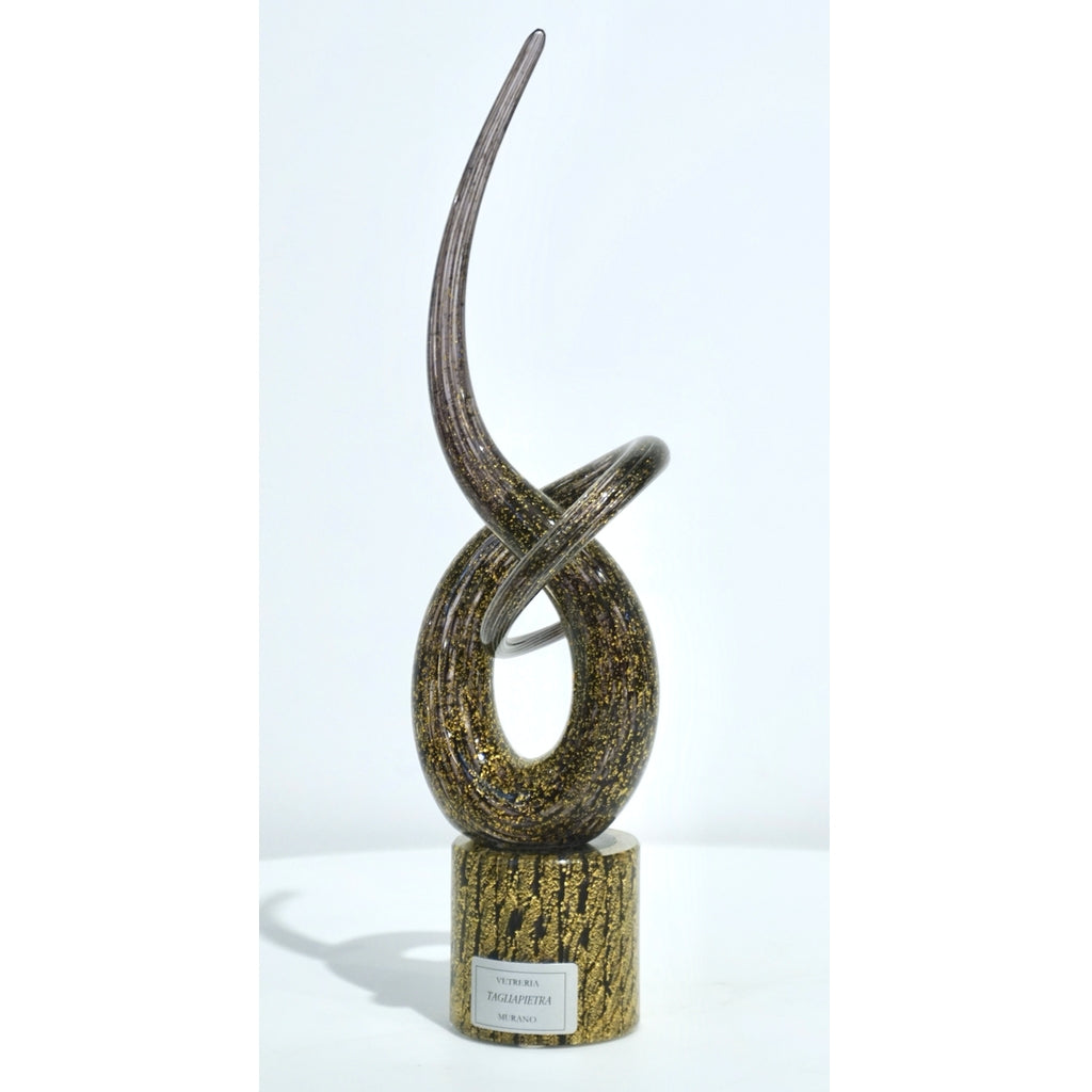 Contemporary abstract curl sculpture in a love knot, with a sensuous swirled and spiraling design, mounted on a round base, in a very special dark amethyst blown Murano glass, extensively worked with pure gold in the glass by Vetreria Tagliapietra Murano, signed piece by Andrea Tagliapietra and dated 2018. Ideal as a Valentine gift.