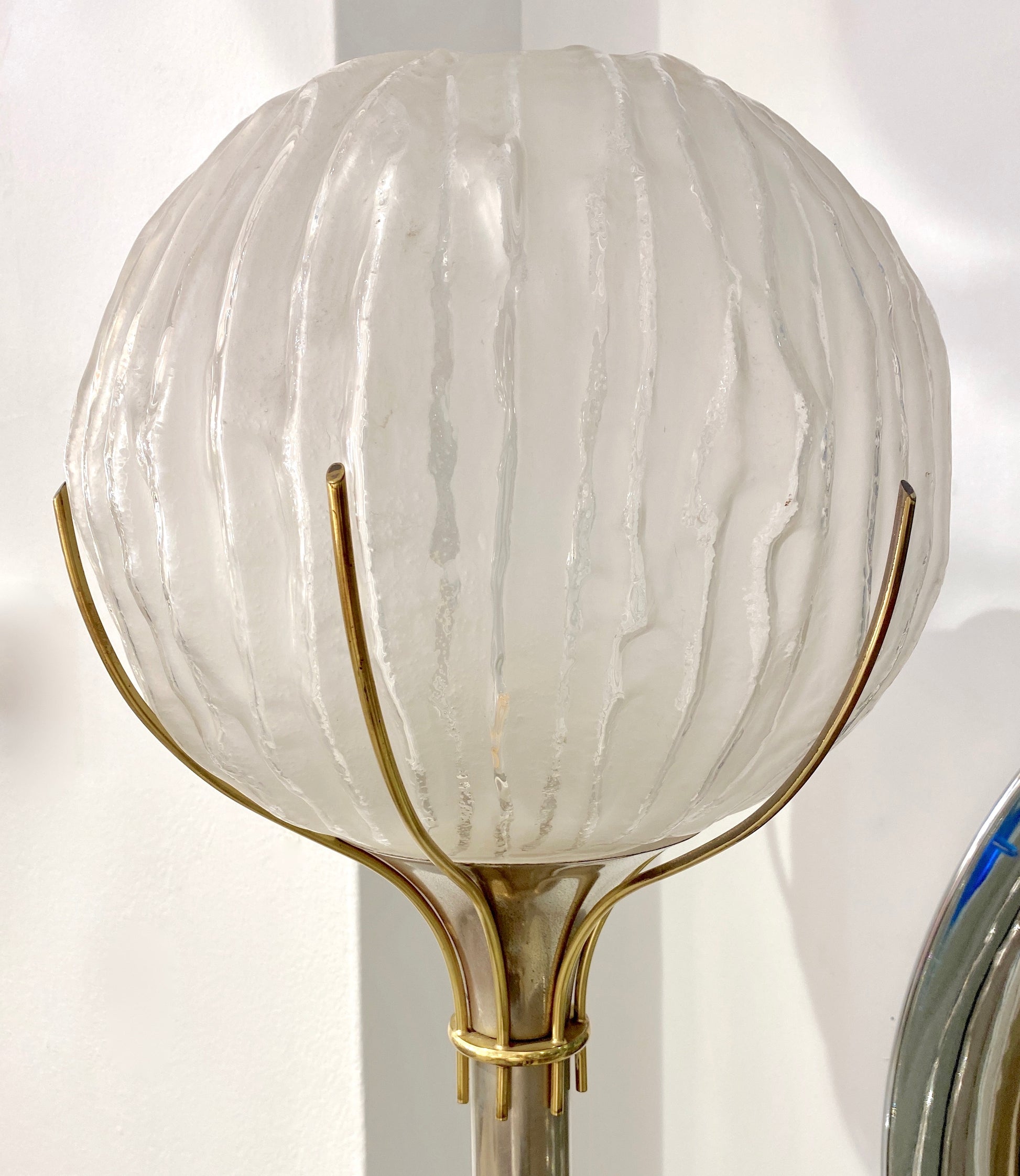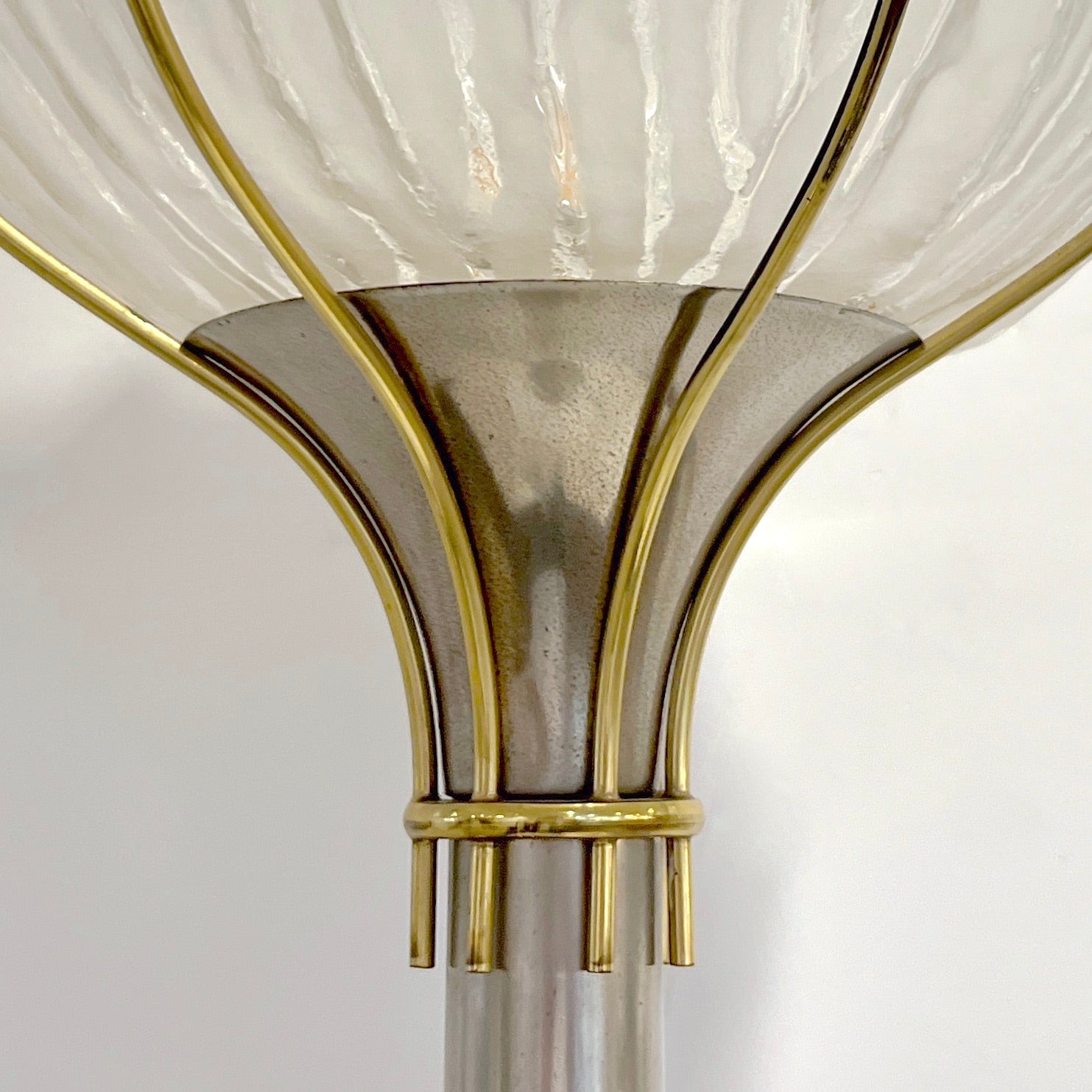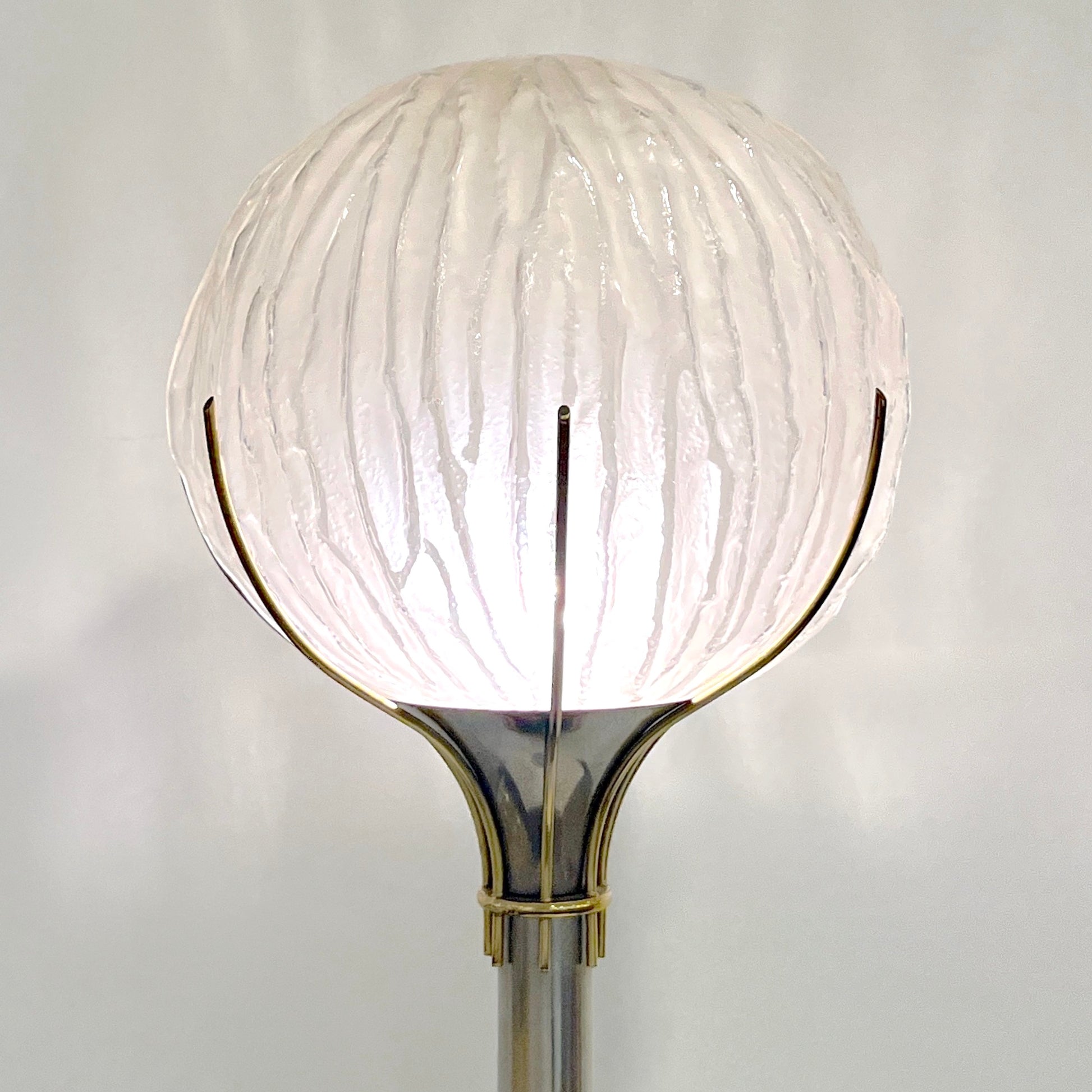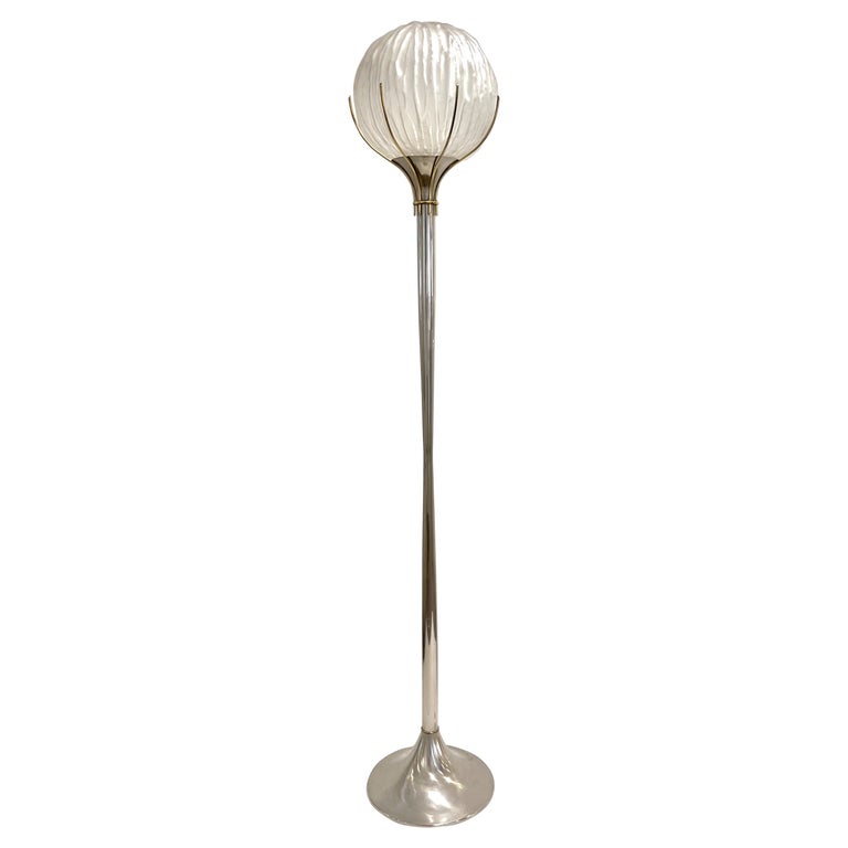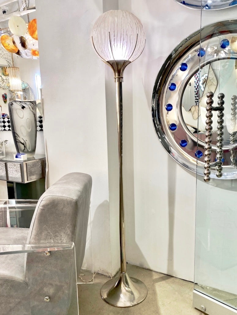 Angelo Brotto Italian Vintage Crystal Murano Glass Globe Nickel Brass Floor Lamp