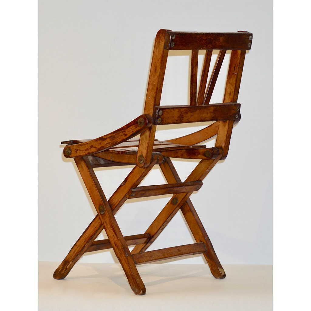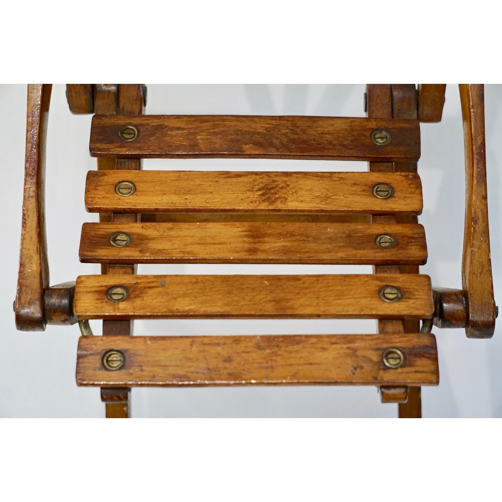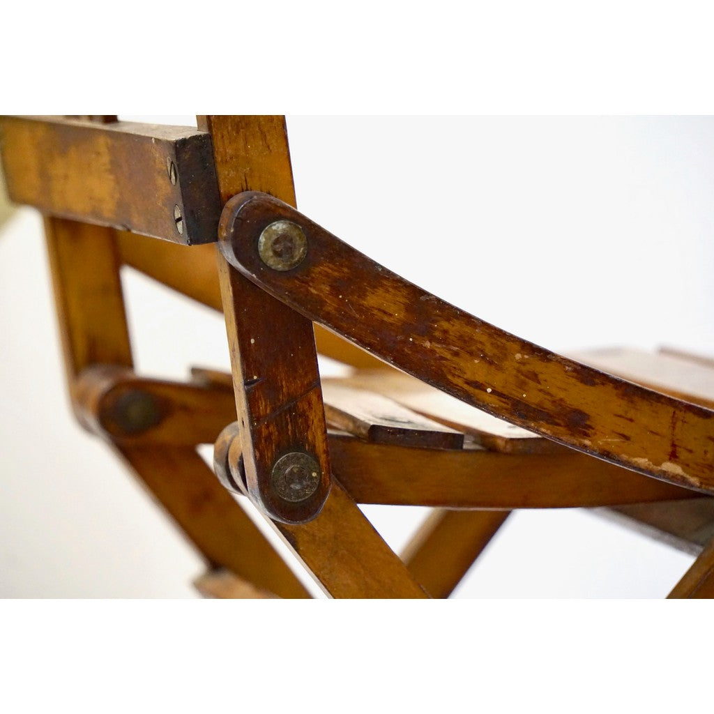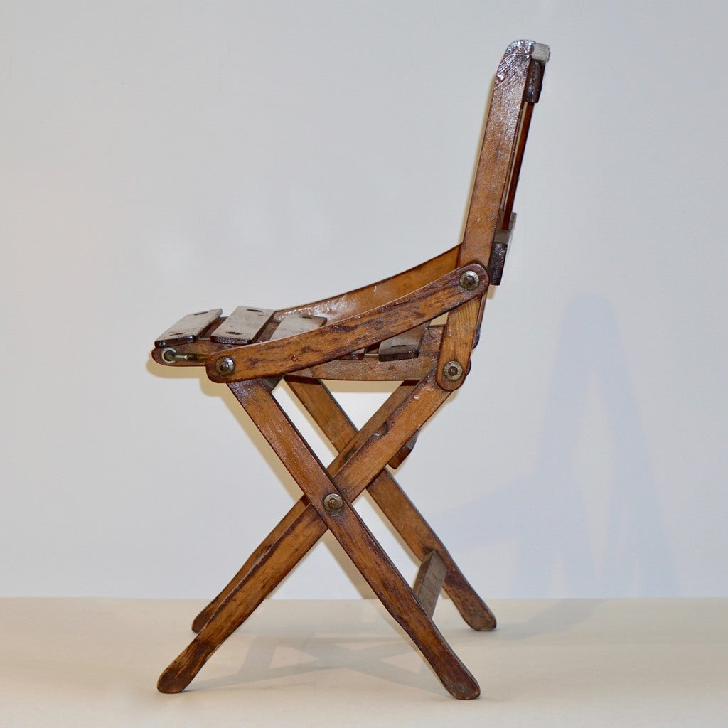 Antique 1950s Italian Handcrafted Oak Doll / Miniature Folding Chair