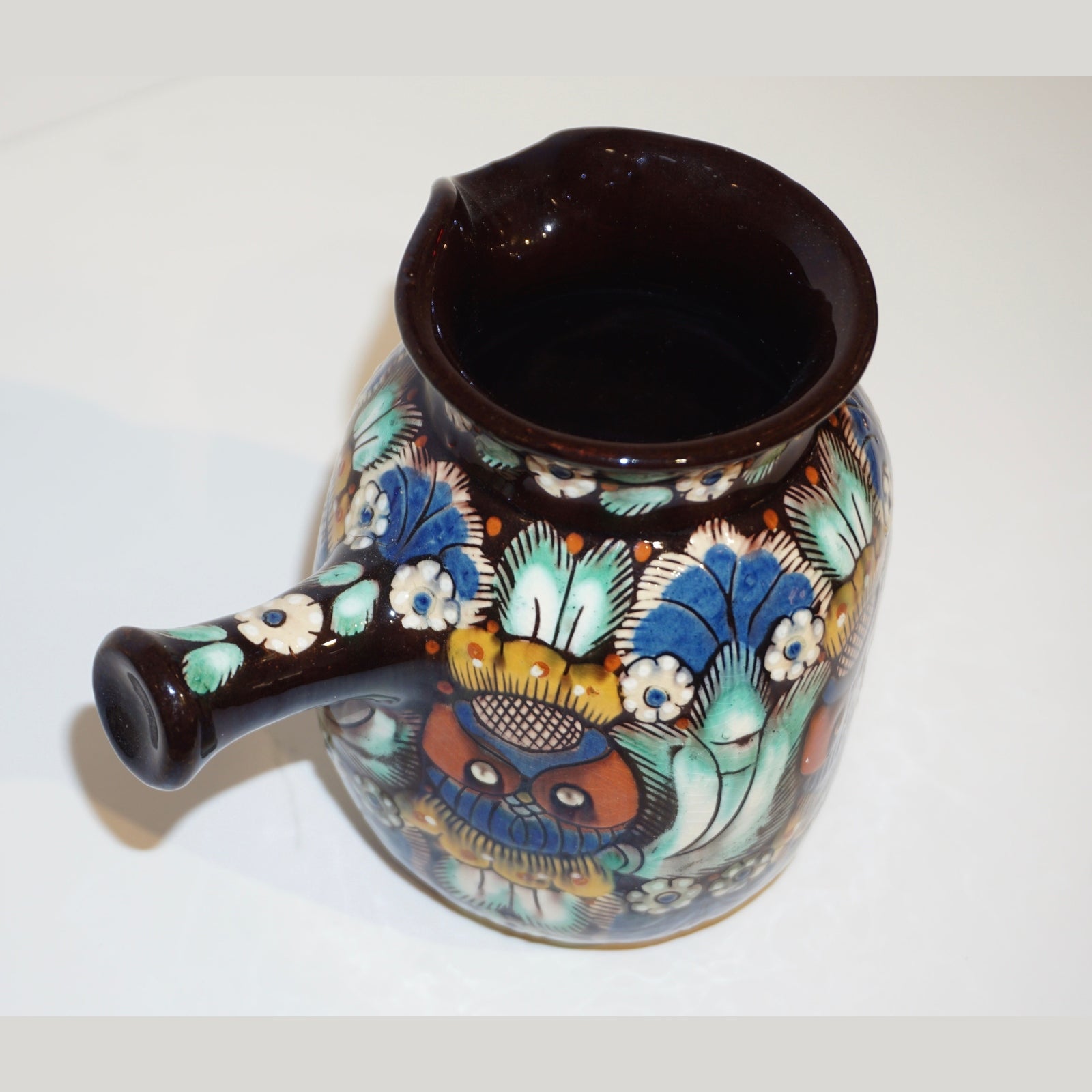 Antique Swiss Arts & Crafts Brown Green Blue White Thoune Enamel Ceramic Jug