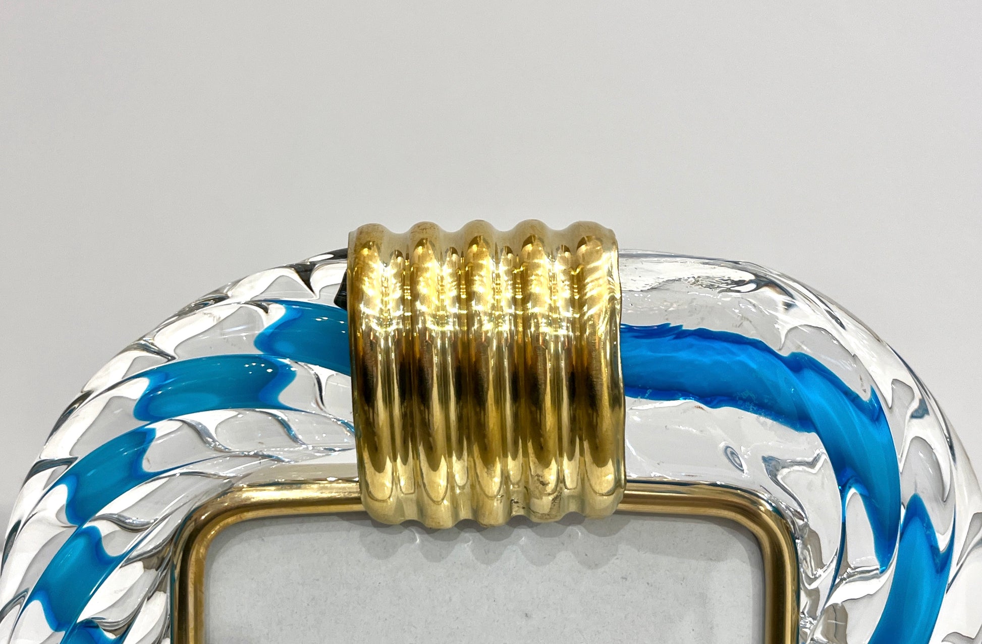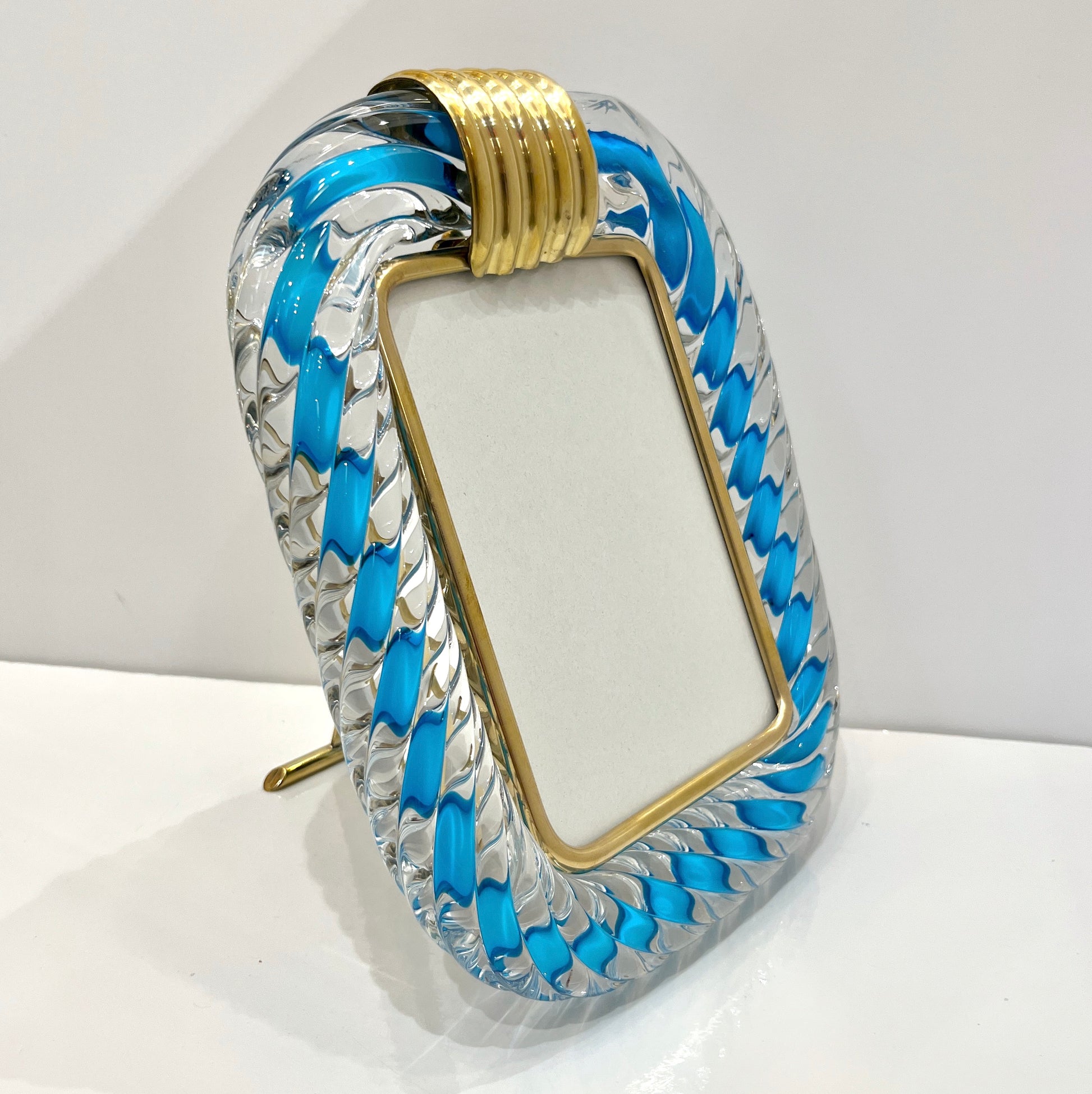 Italian Barovier Toso Brass & Turquoise Crystal Murano Glass Modern Photo Frame