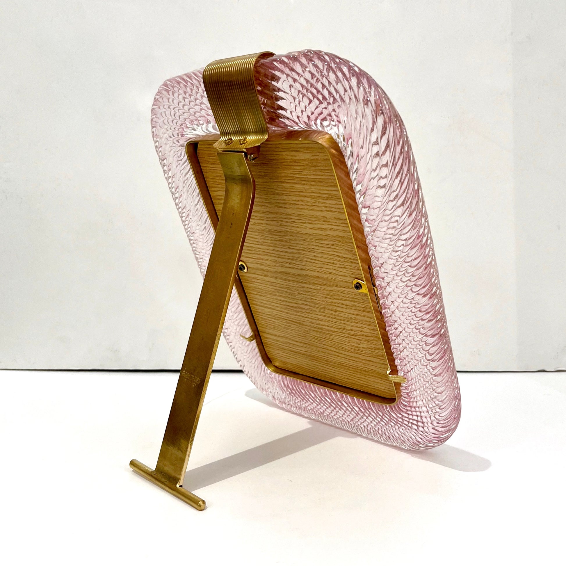 2000 Barovier Toso Italian Pink Crystal Twisted Murano Glass Brass Picture Frame
