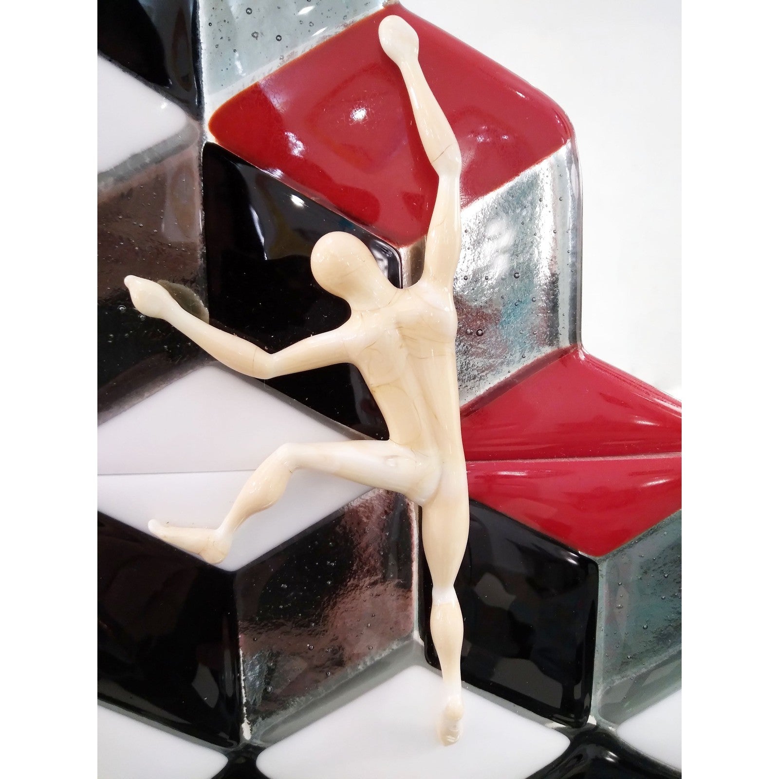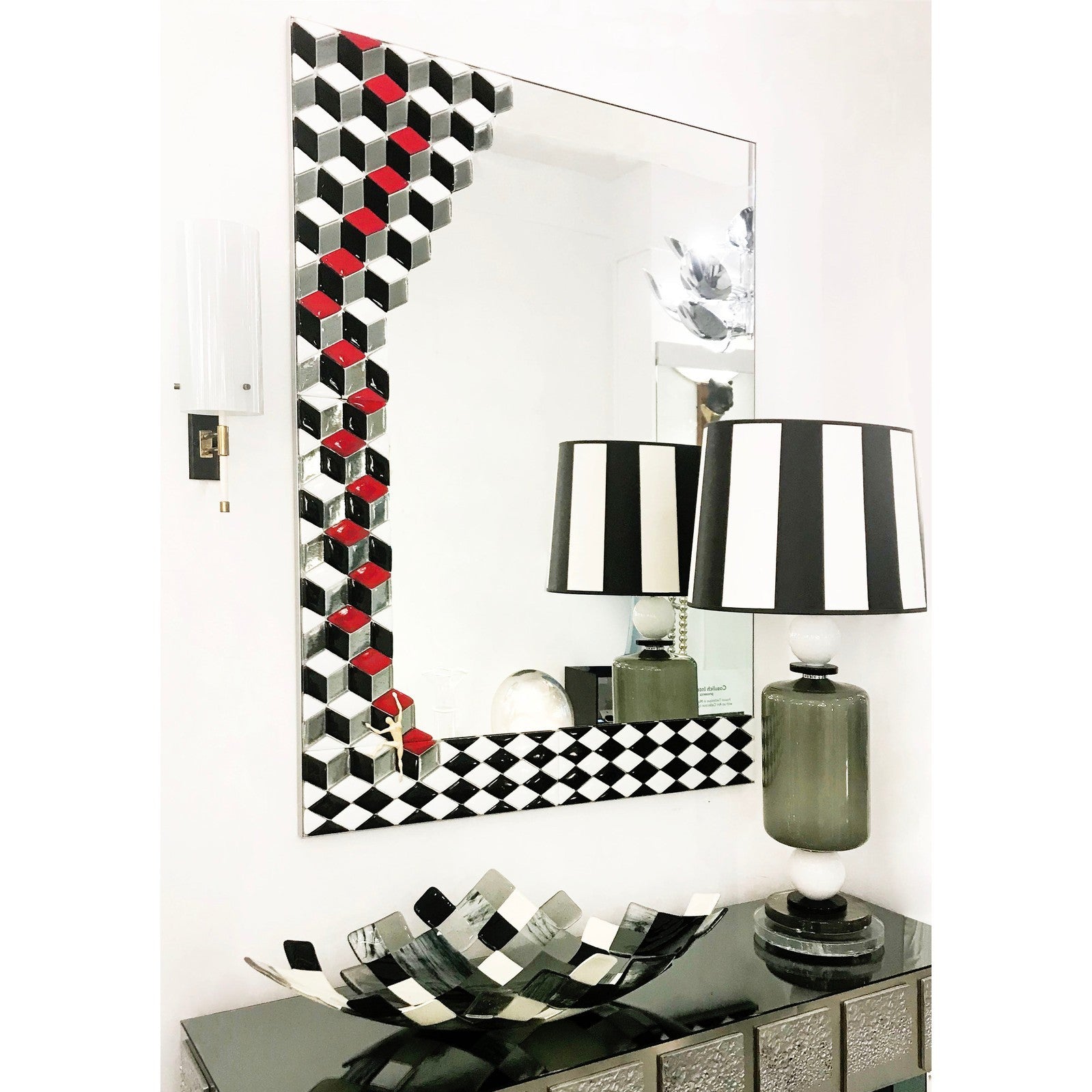 Bespoke Escher Inspired Italian Red Black White Smoked Murano Glass Satin Mirror