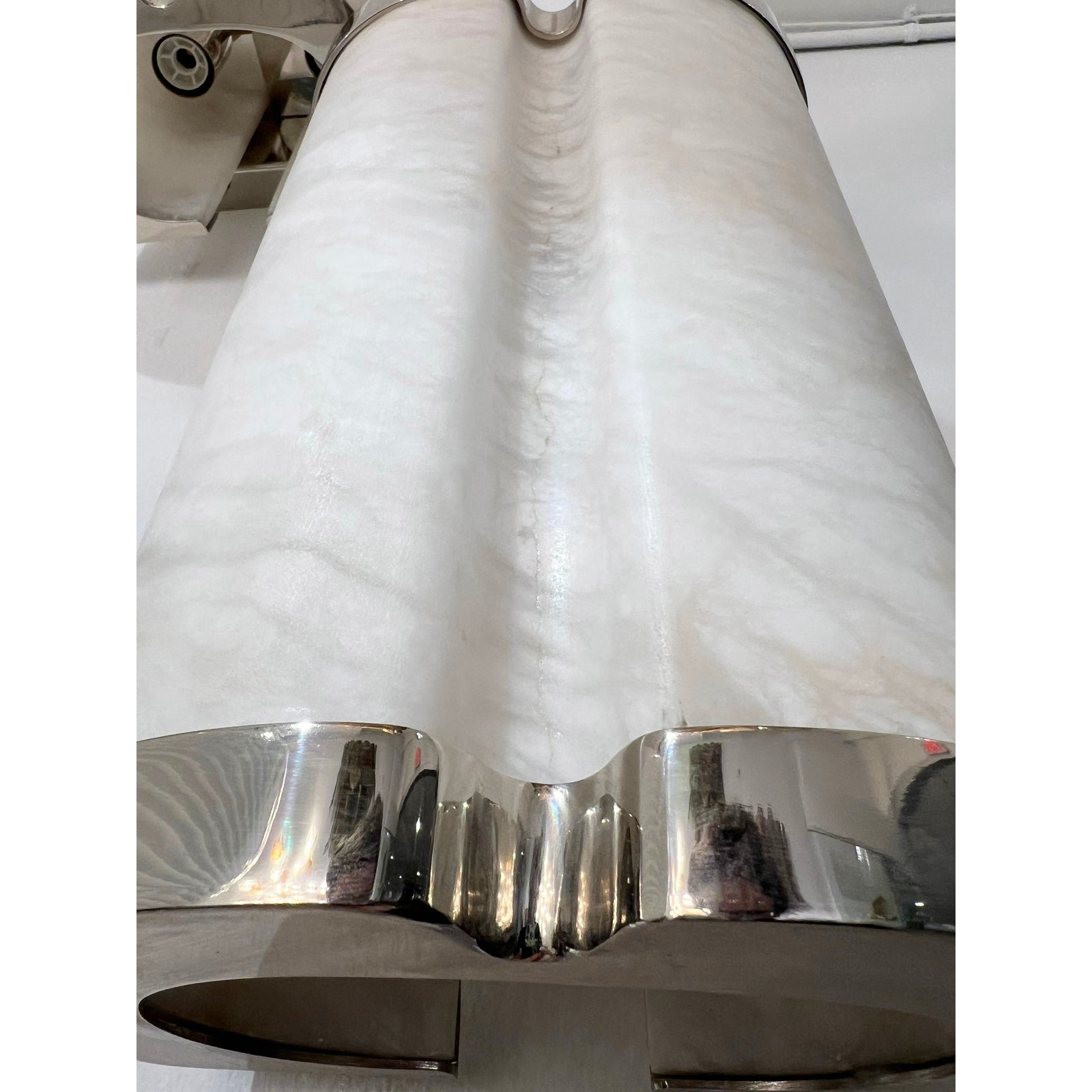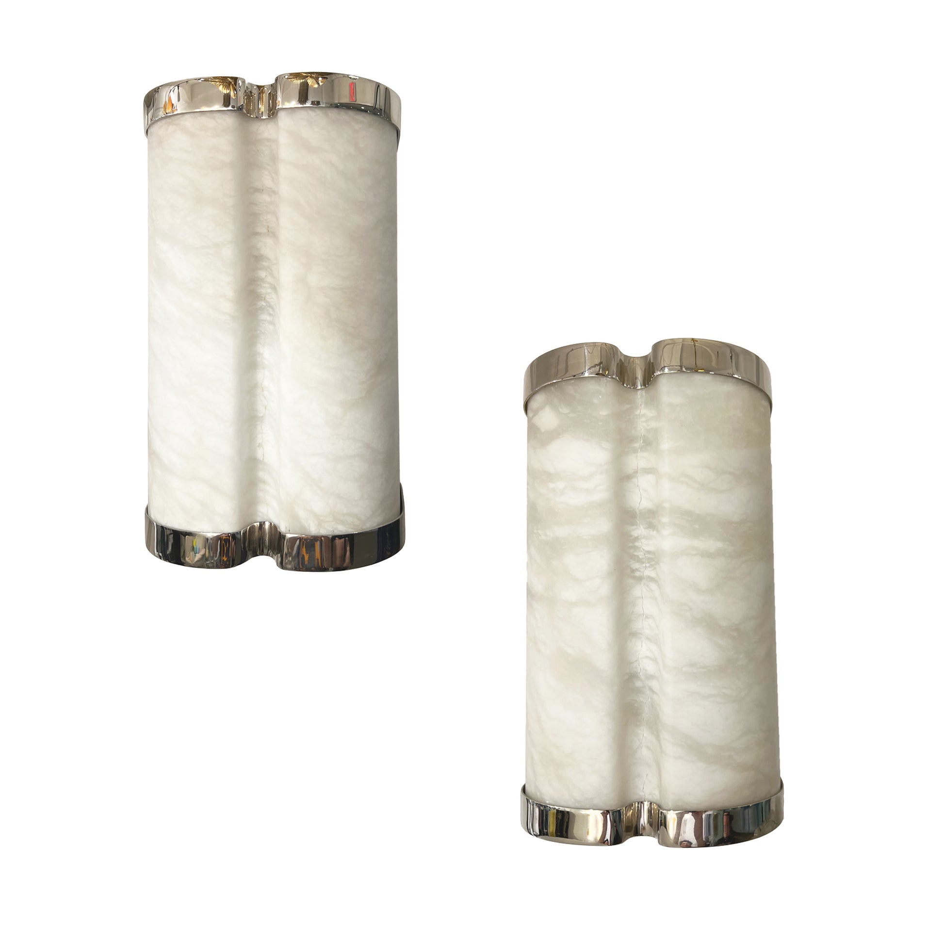 Bespoke Italian Art Deco Style Cream White Alabaster Nickel Pair Curved Sconces