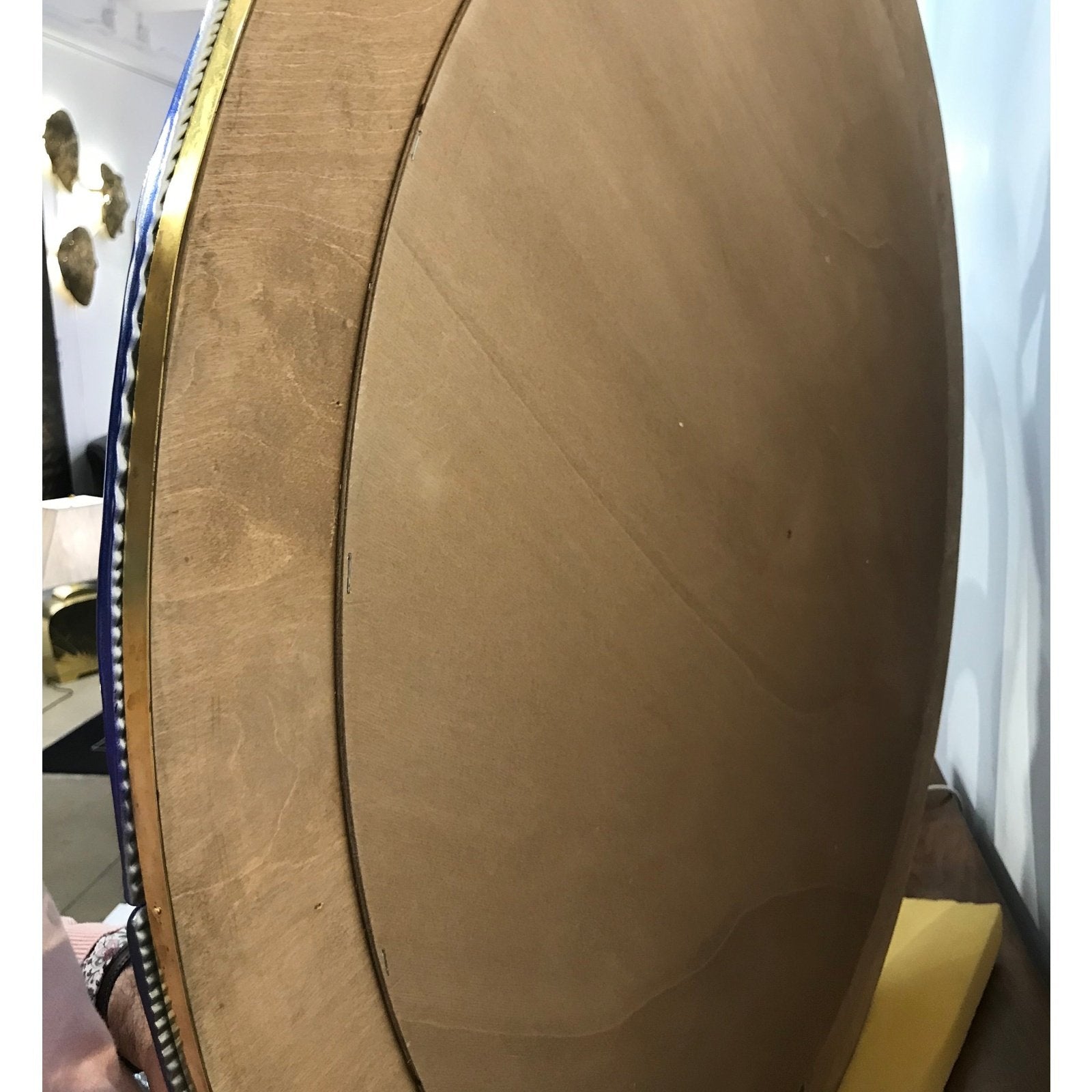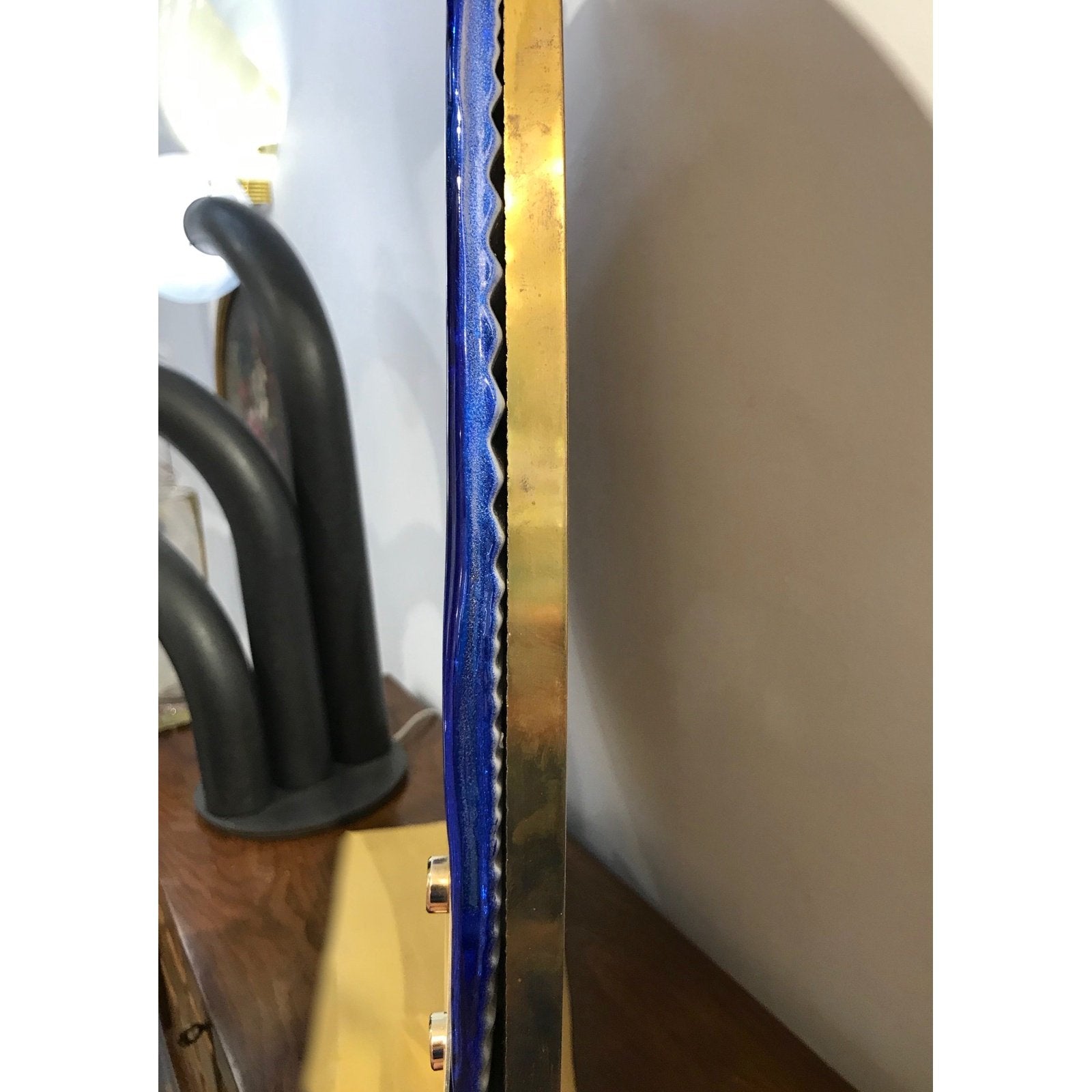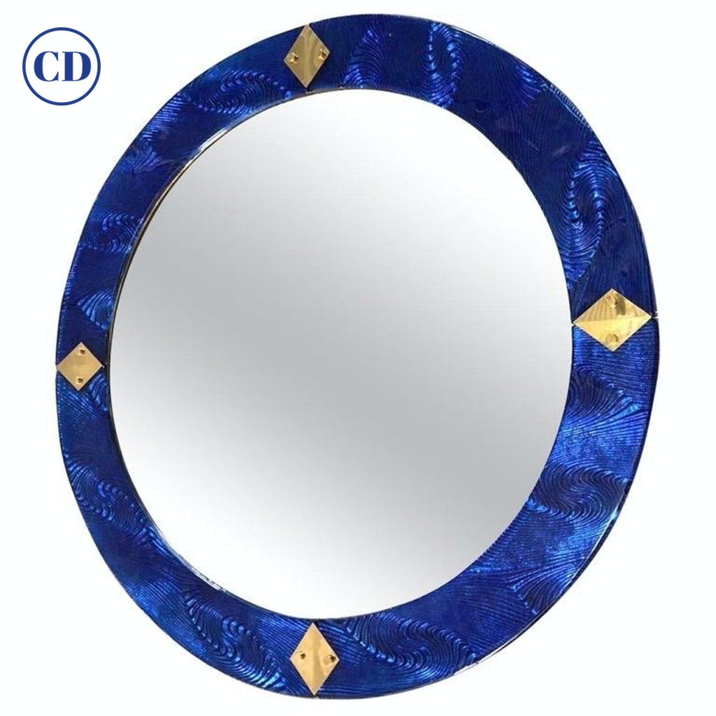Bespoke Italian Custom Brass & Textured Cobalt Blue Murano Glass Round Mirror