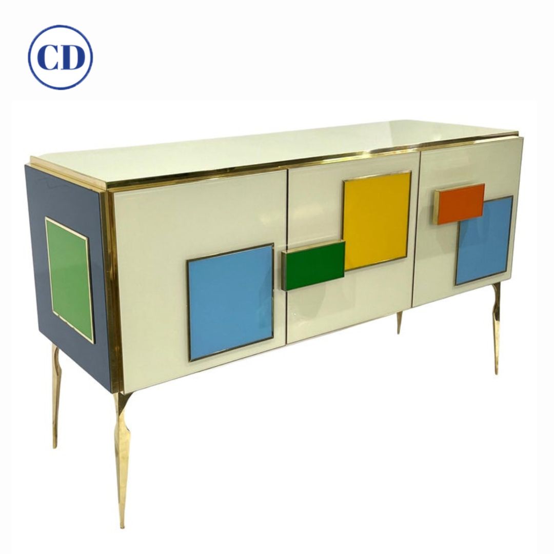 Bespoke Italian Ivory Yellow Green Blue Geometric Postmodern Cabinet/Sideboard