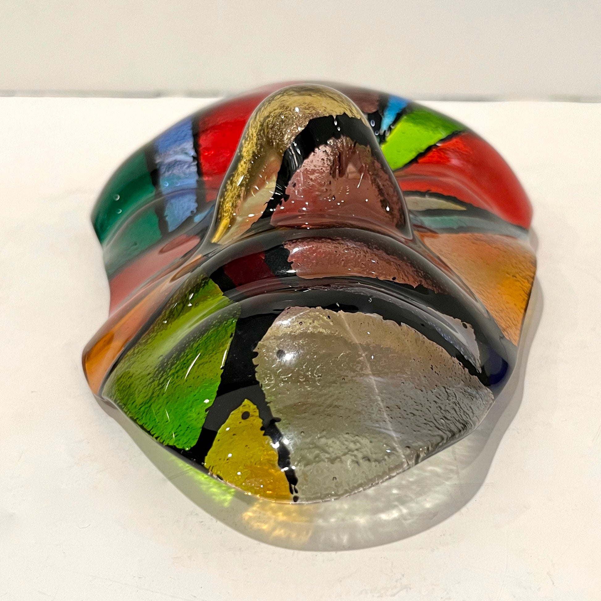 Bespoke Italian Mondrian Style Blue Green Red Black Murano Glass Mask Sculpture