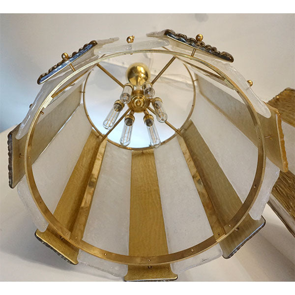 Bespoke Modern Art Deco Italian Gold White Murano Glass Brass Lantern/Chandelier