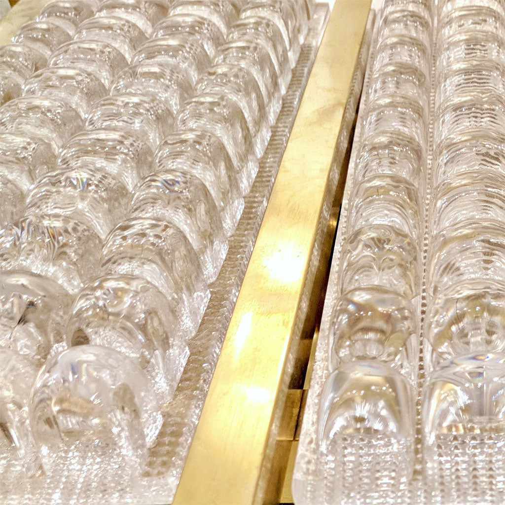 1970s Italian Large Rectangular Brass and Clear Murano Glass Sconces