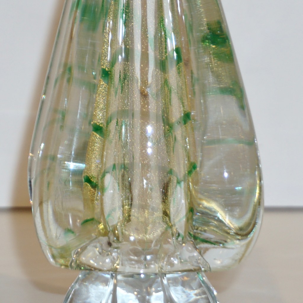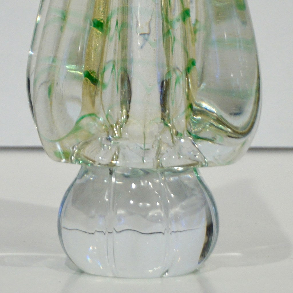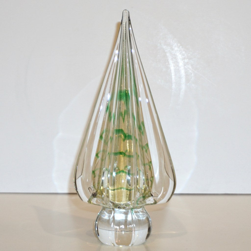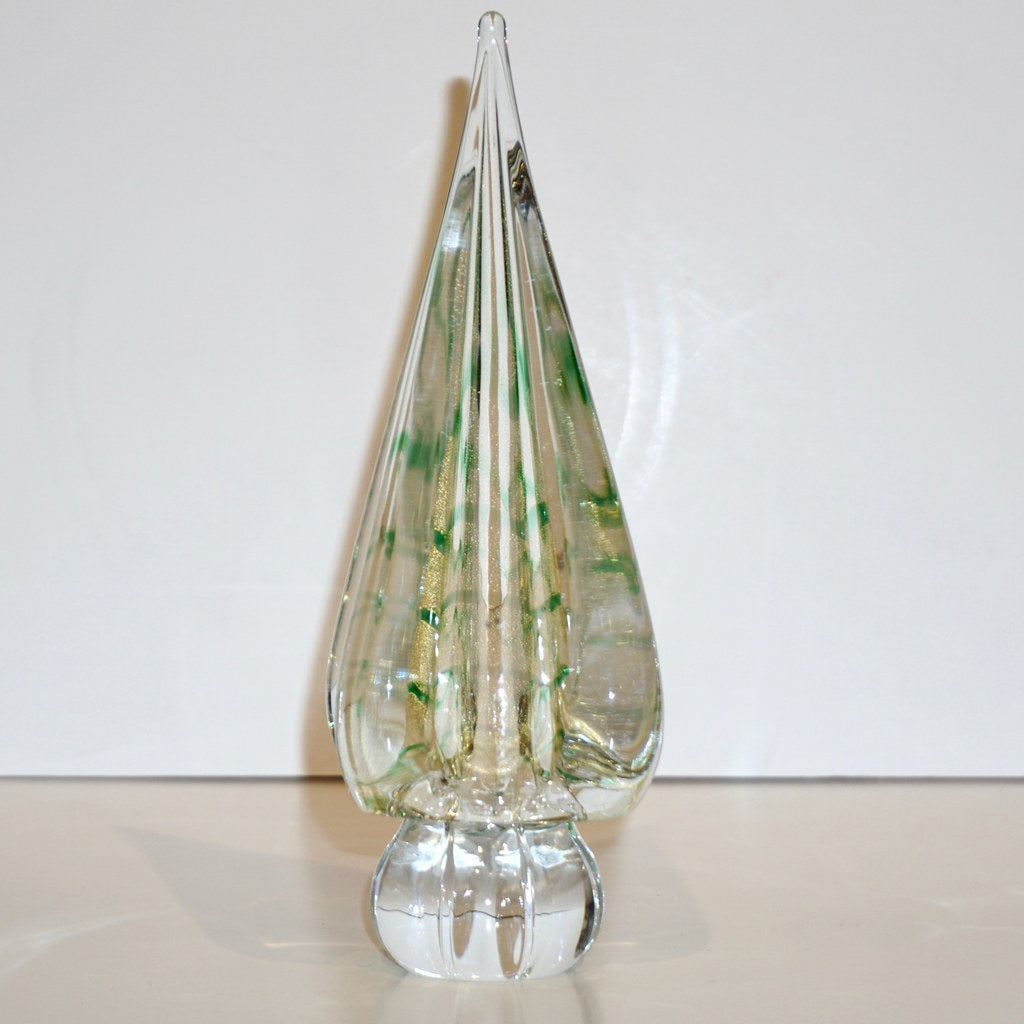 Cenedese 1980s Italian Vintage Green Gold Crystal Murano Glass Tree Sculpture