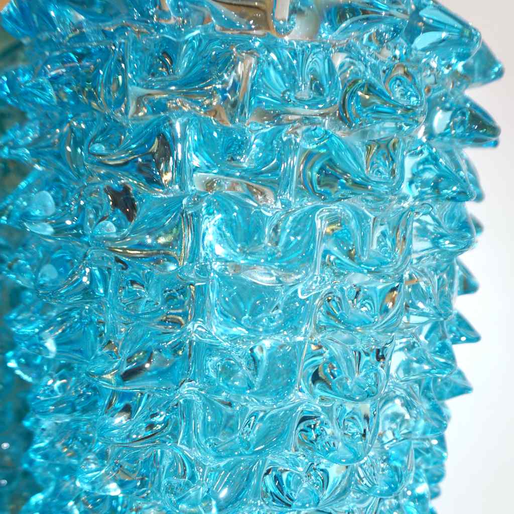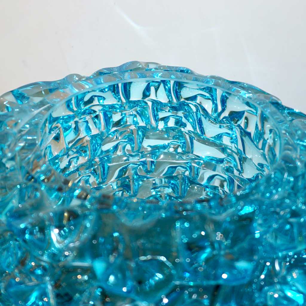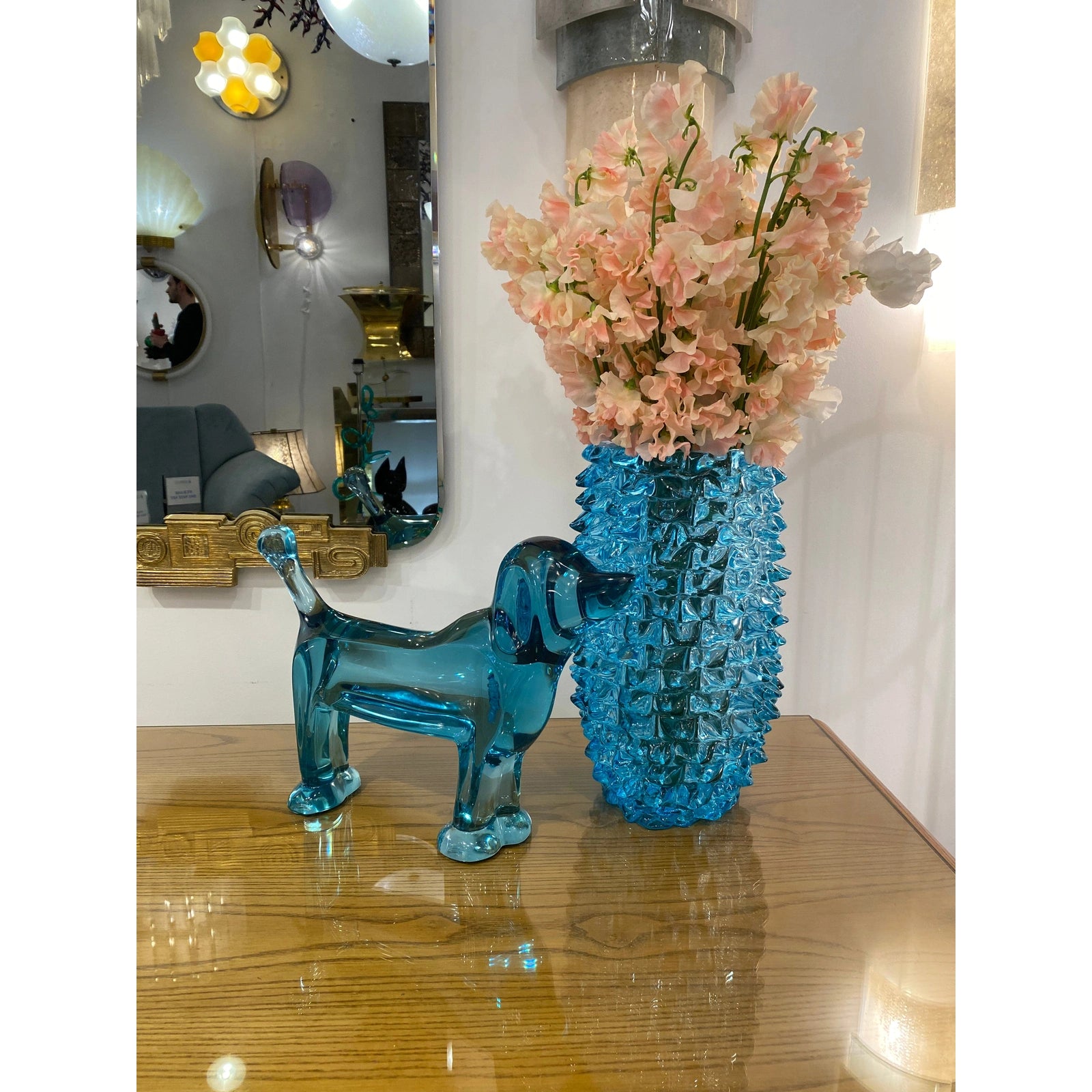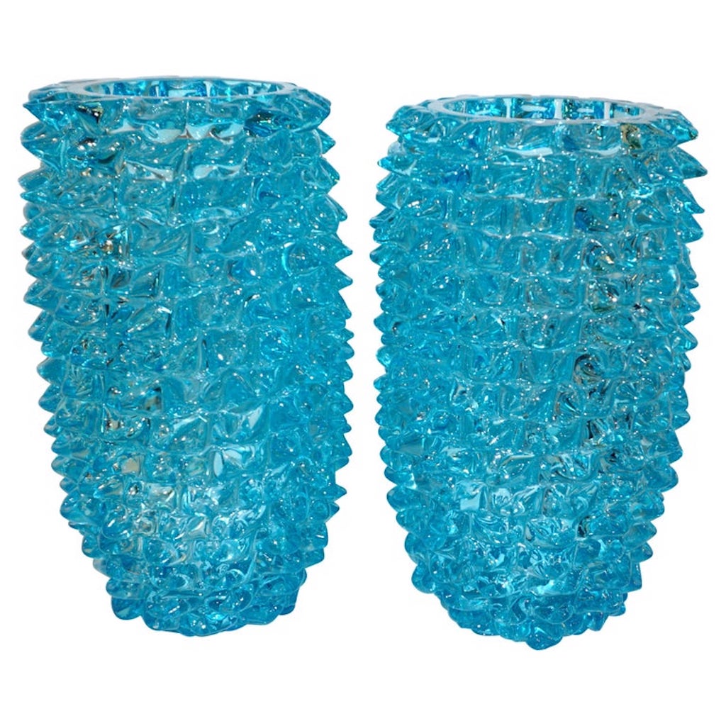 2000s Cenedese Italian Pair of Aquamarine Blue Rostrato Murano Glass Ovoid Vases
