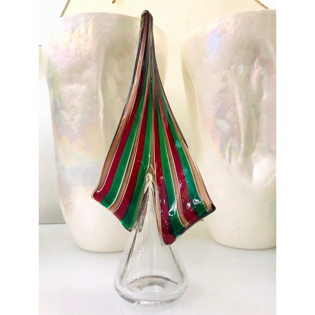 Cenedese 1980 Italian Vintage Green Red Copper Murano Glass Large Tree Sculpture
