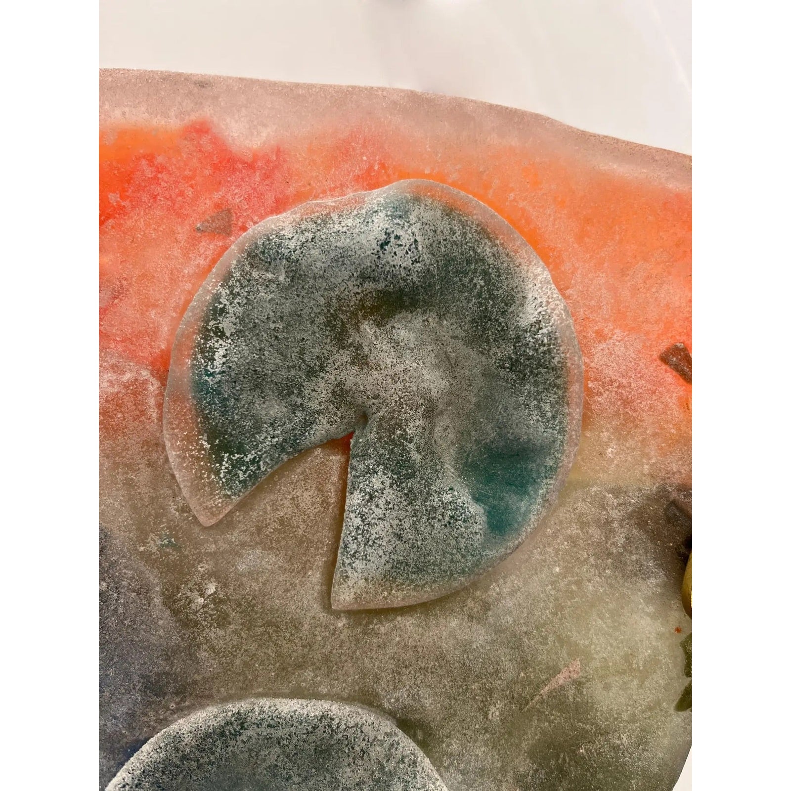1950s Cenedese Italian Orange Blue Green Scavo Murano Glass Sconce