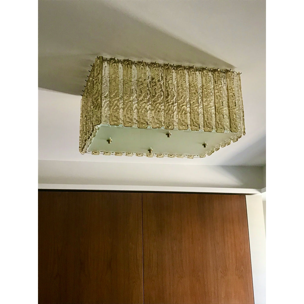 Contemporary Art Deco Style Italian Gold Amber Crystal Murano Glass Flush Chandelier