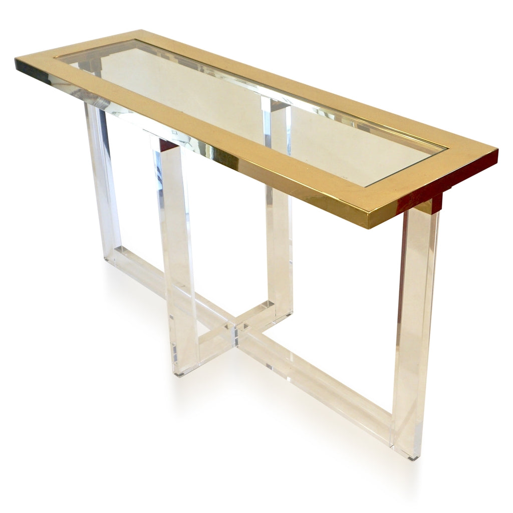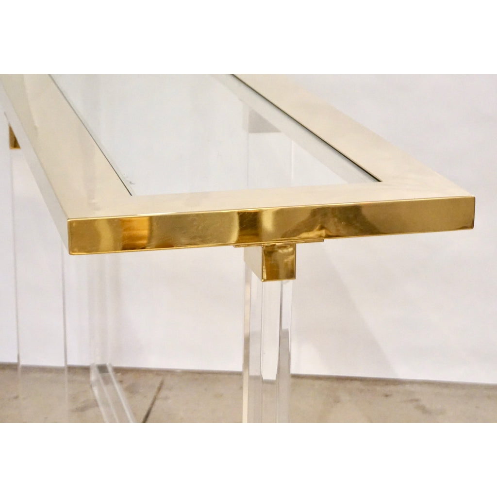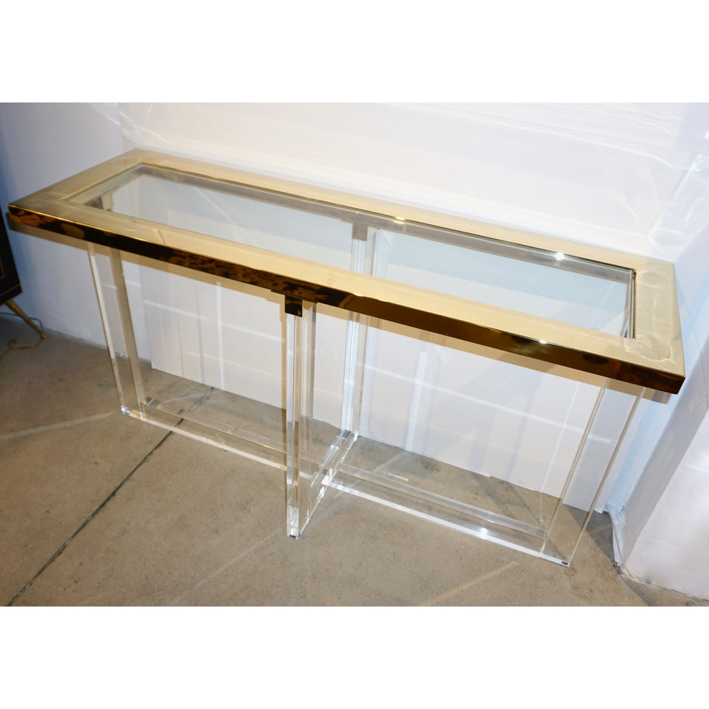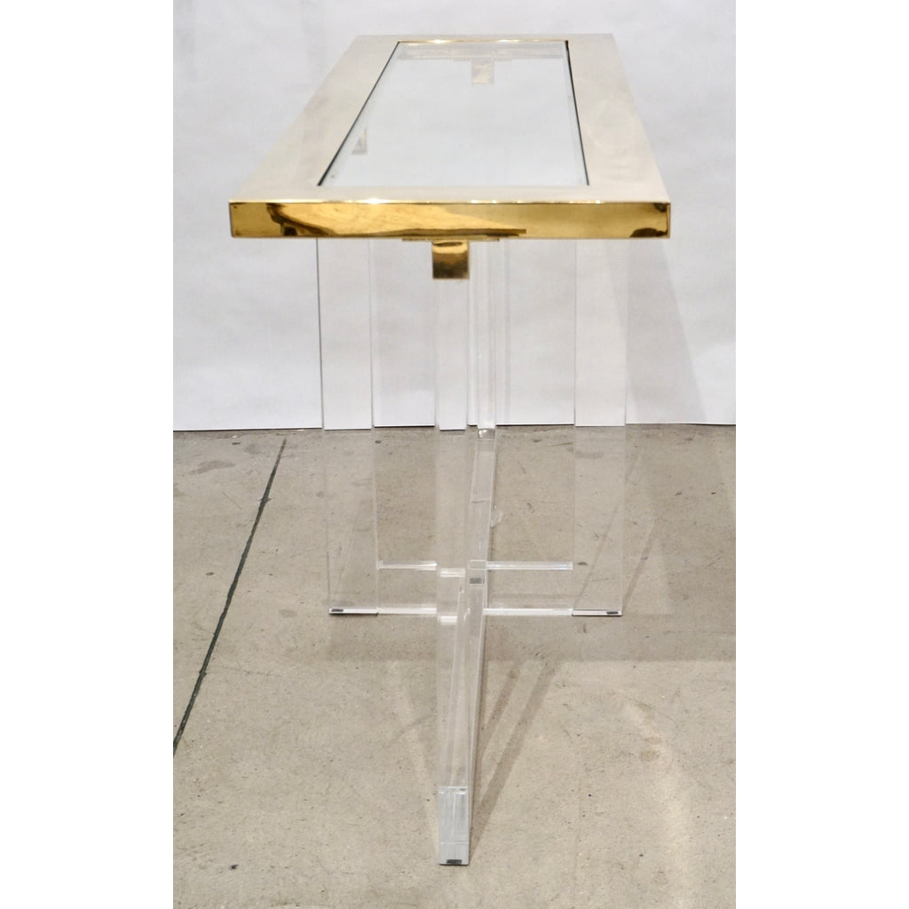 Contemporary Bespoke Modern Geometric Design Clear Lucite and Gold Steel Console