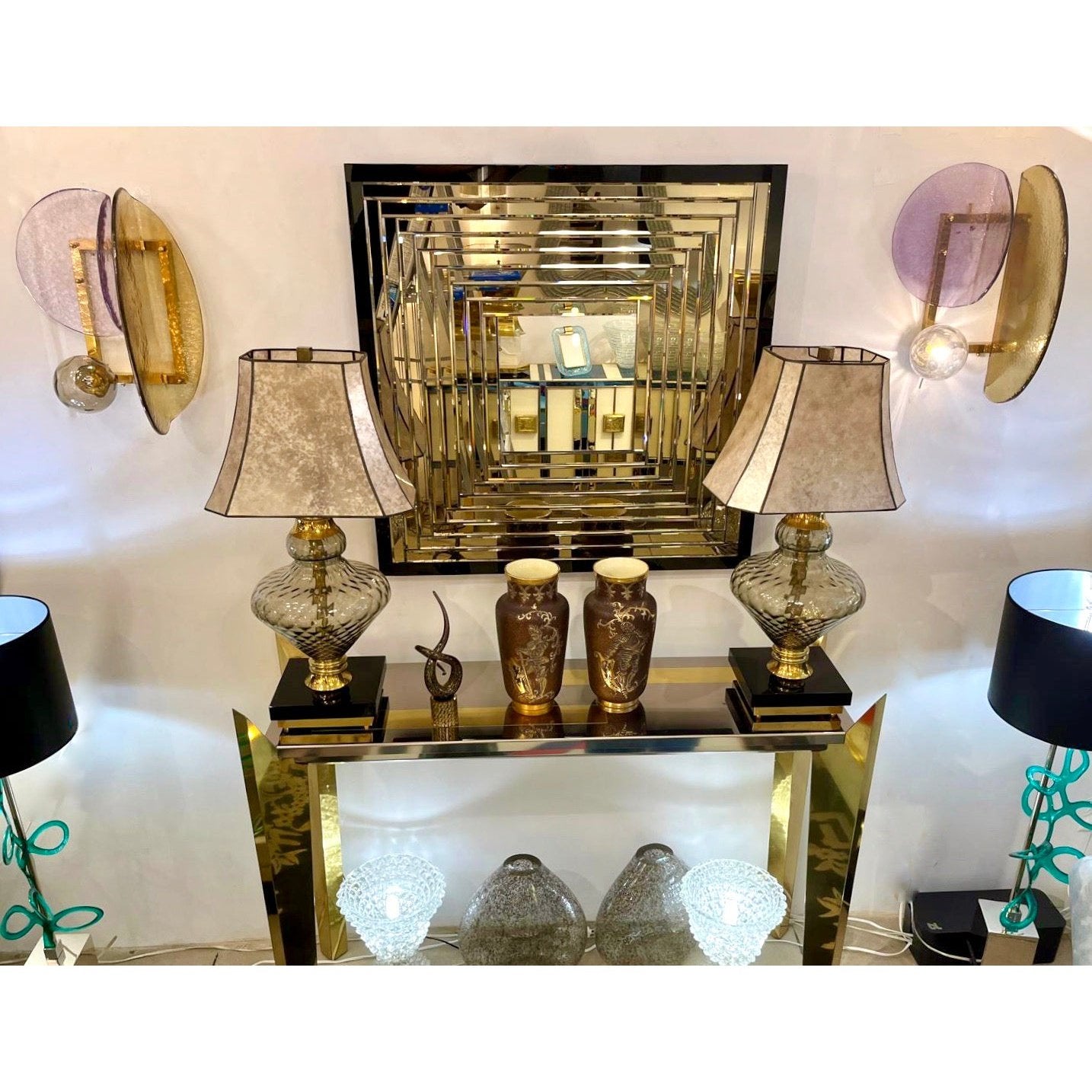 Contemporary Geometric Italian Black bronzed Murano Glass Gradient Square Mirror