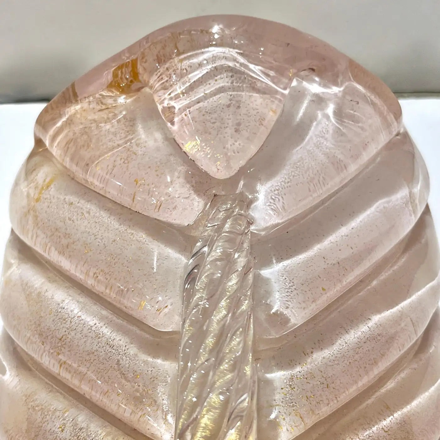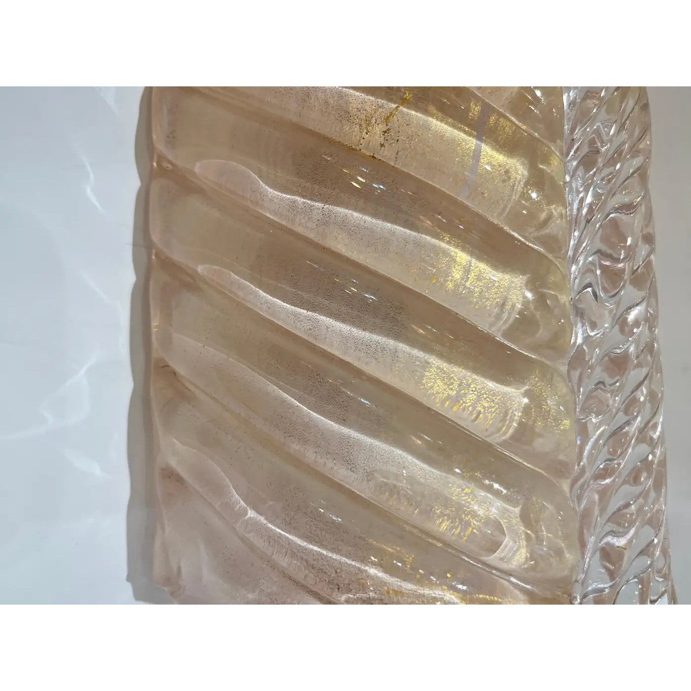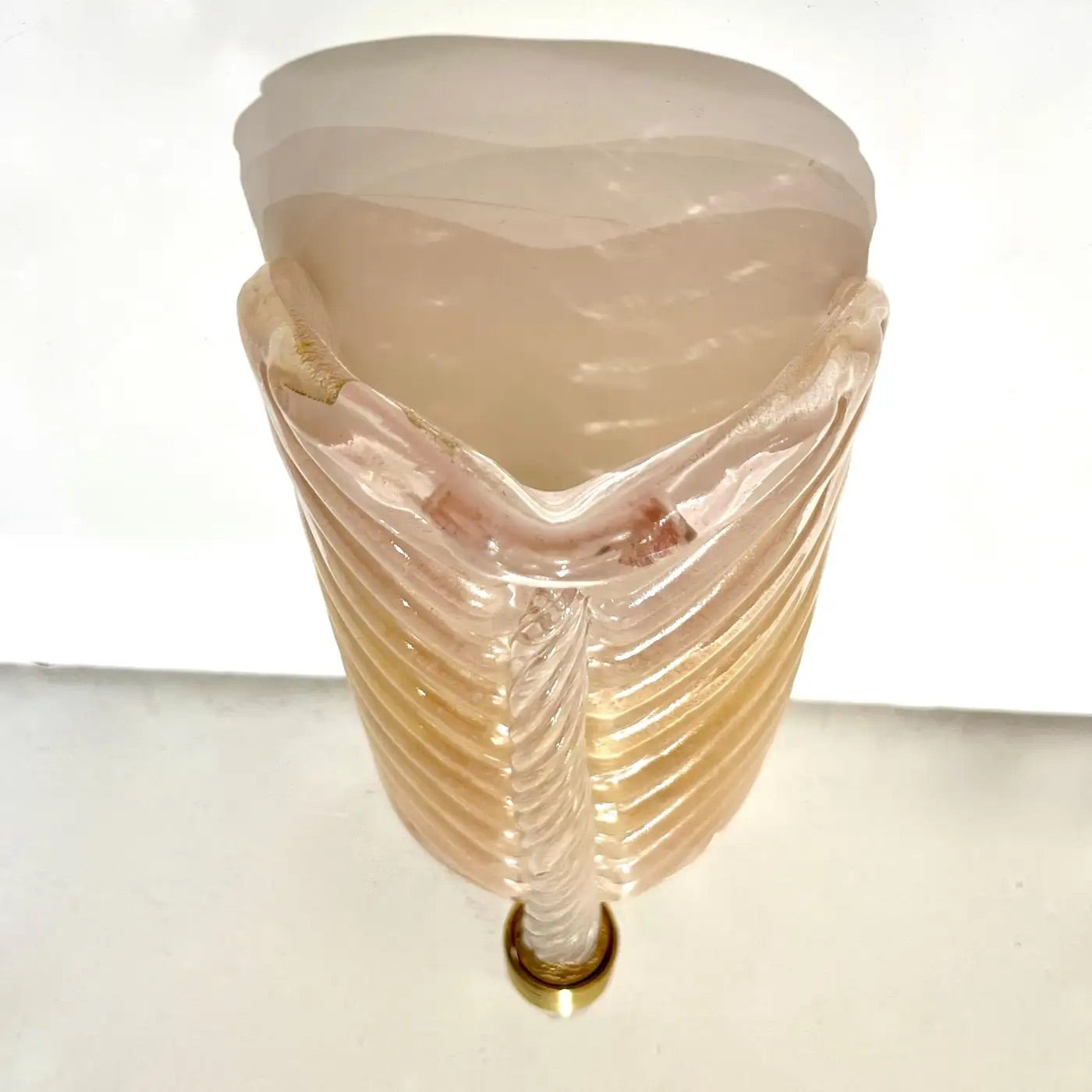 Contemporary Italian Art Deco Pair of Pink Gold Leaf Murano Glass Brass Sconces