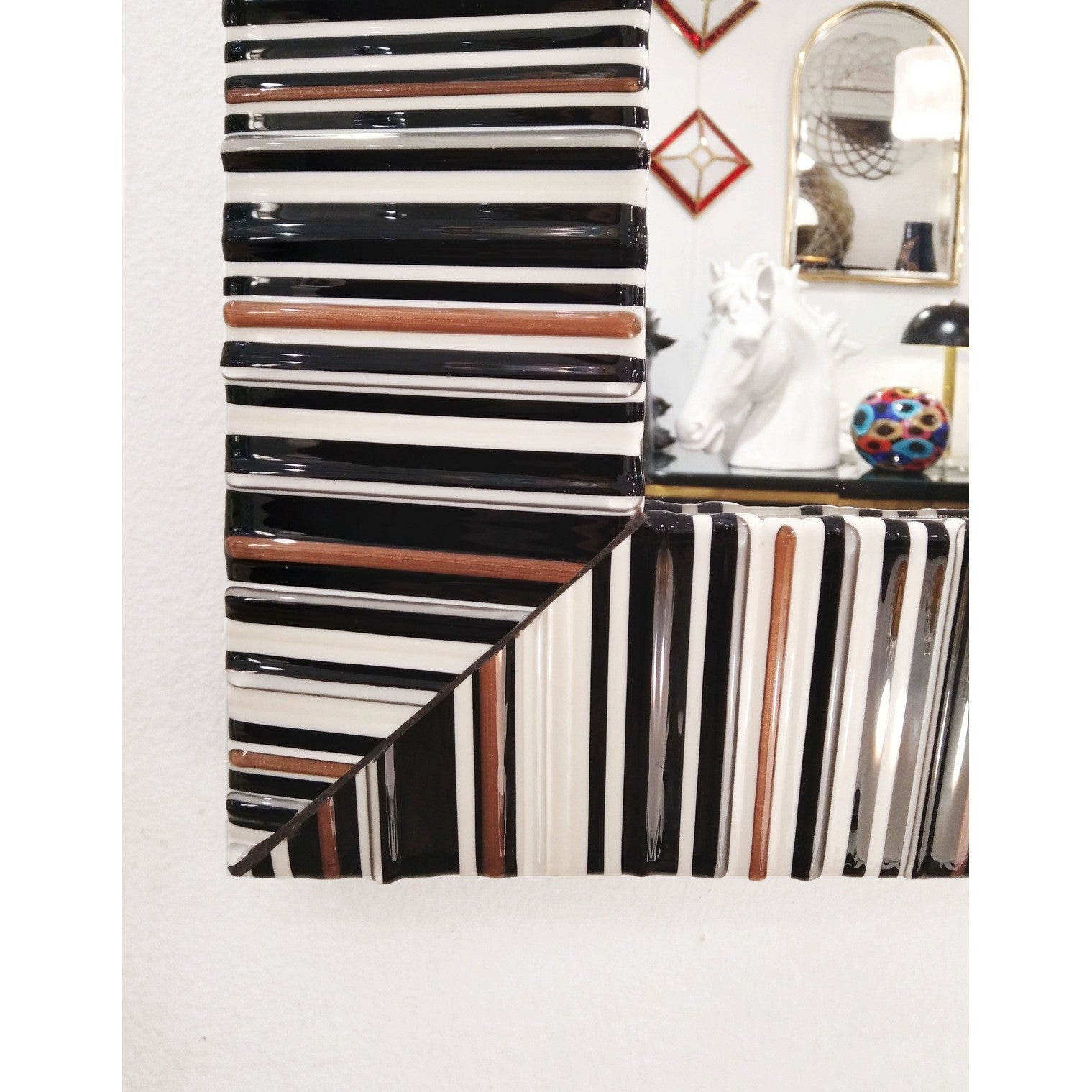 Contemporary Italian Black White Copper Geometric Murano Glass Modern Mirror