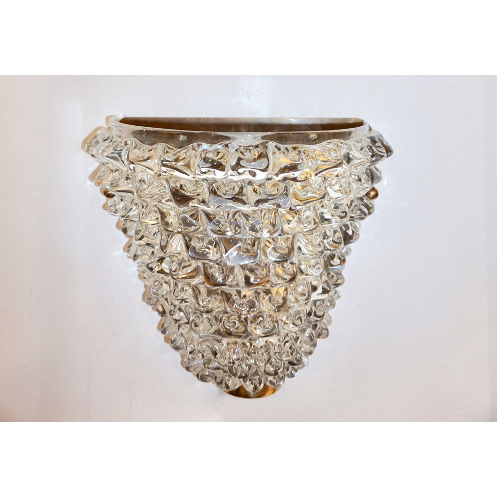 Contemporary Italian Brass & Crystal Rostrato Textured Murano Glass Sconces