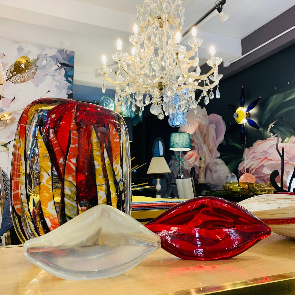 Contemporary Italian Crystal Murano Glass Lips Decorative Art Modern Sculpture