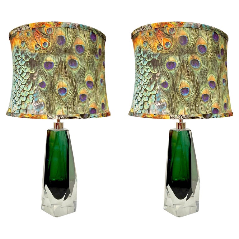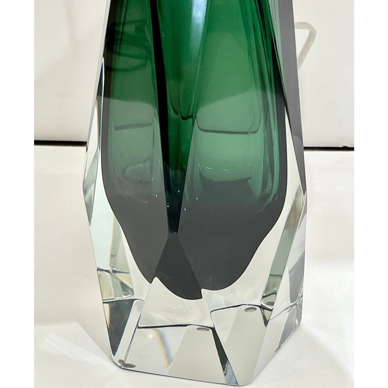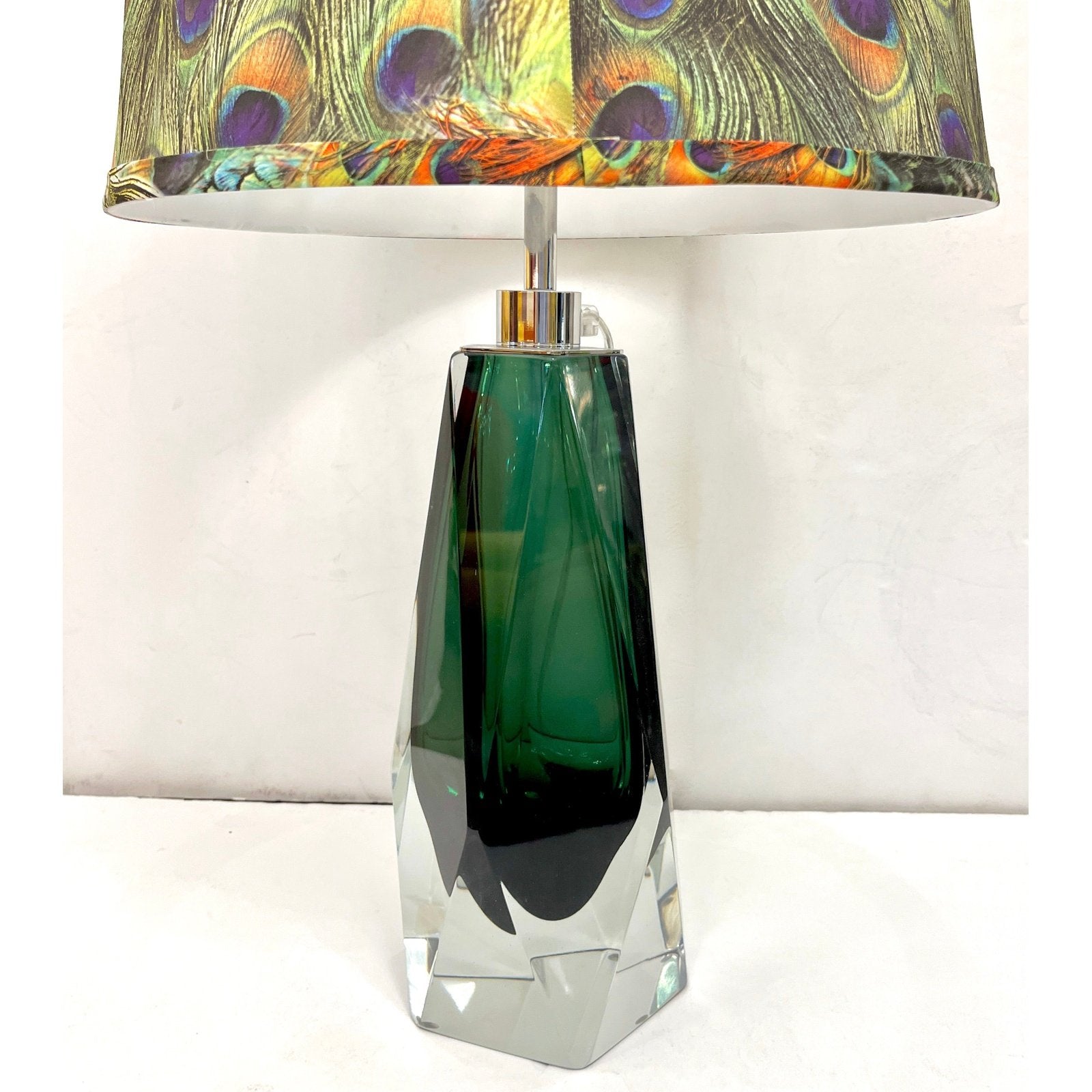 Contemporary Italian Forest Green Diamond Cut Crystal Murano Glass Table Lamps