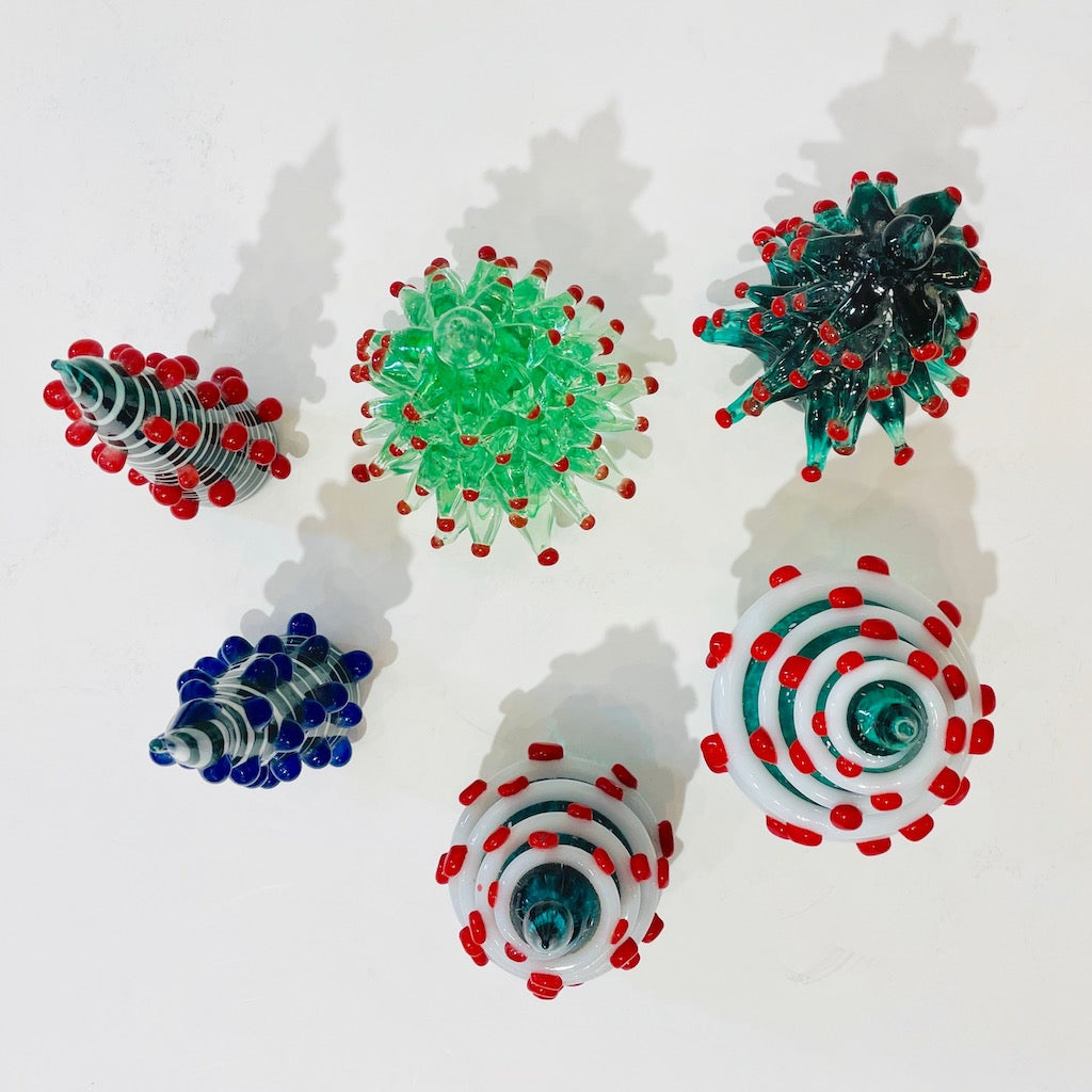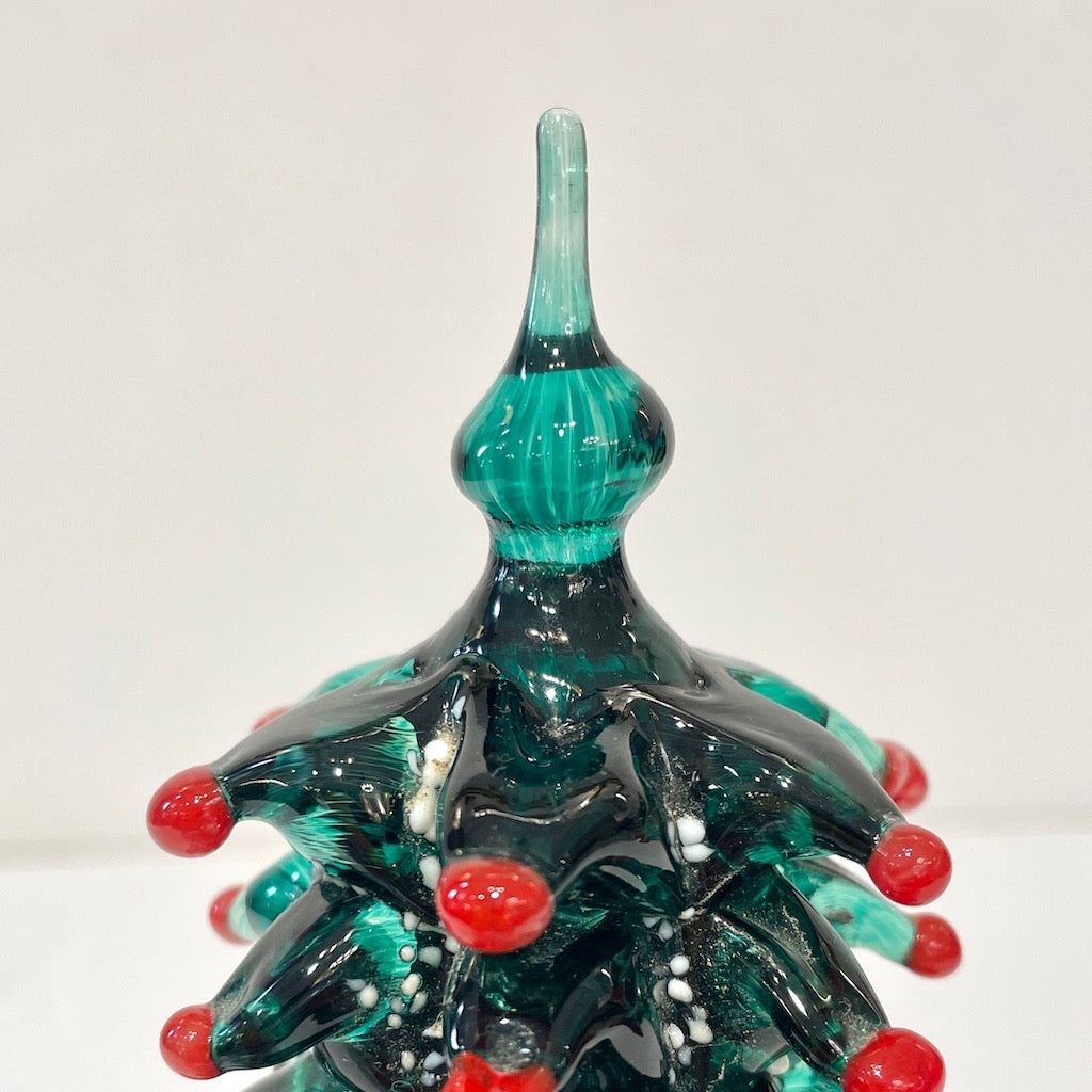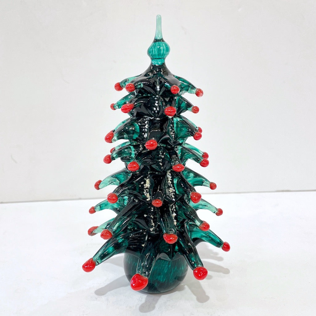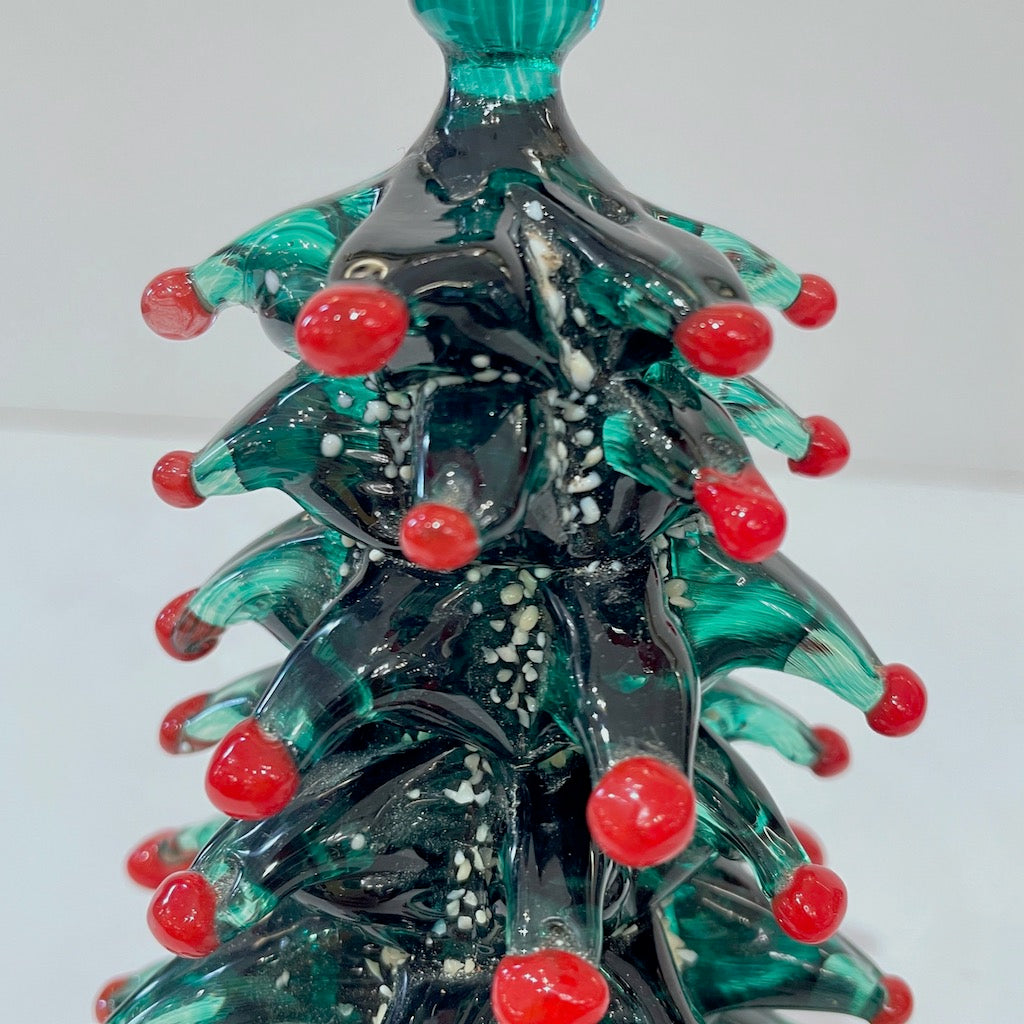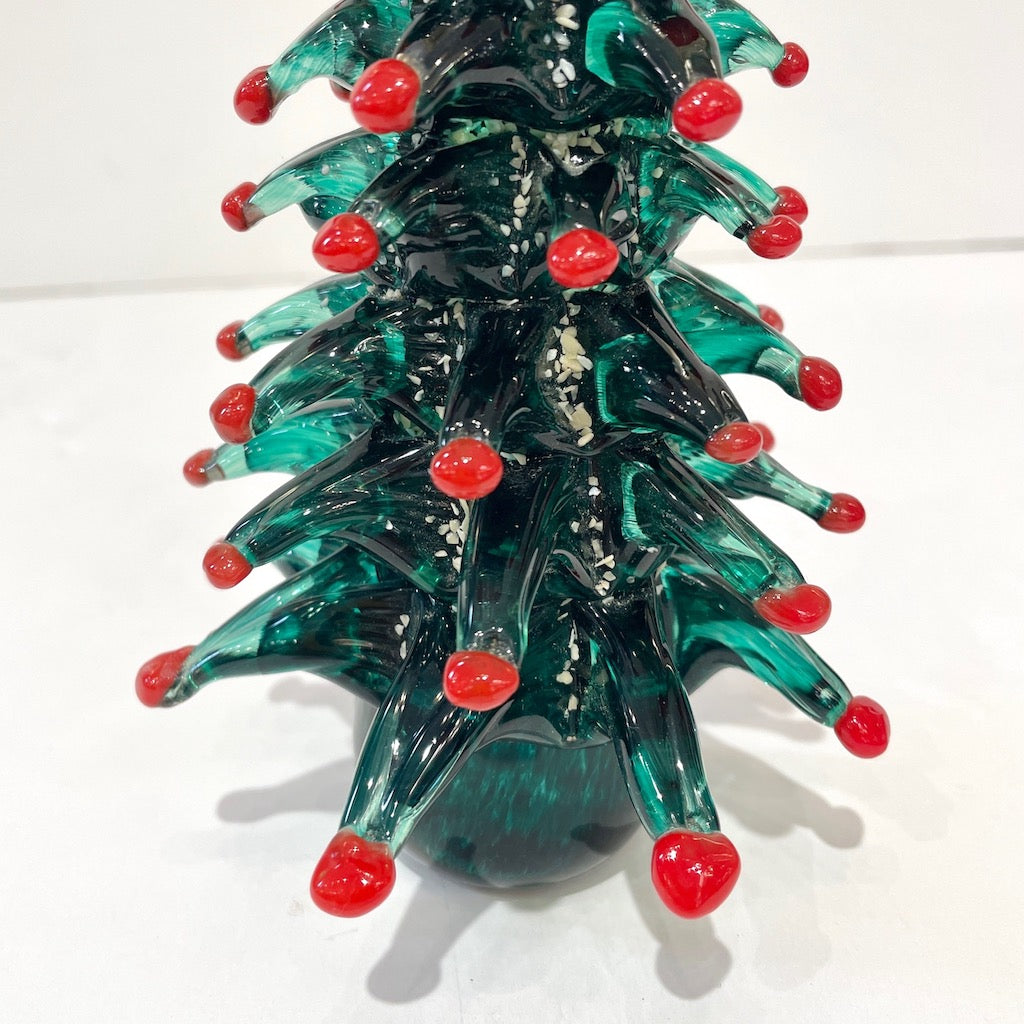 Contemporary Italian Modern Green Red Murano Glass Christmas Tree Sculpture