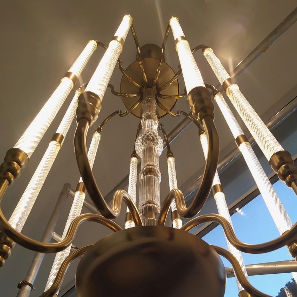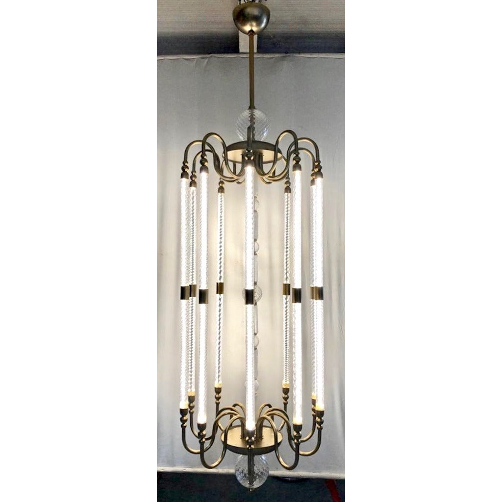 Contemporary Bespoke Italian Monumental Murano Glass Antique Brass Open Lantern