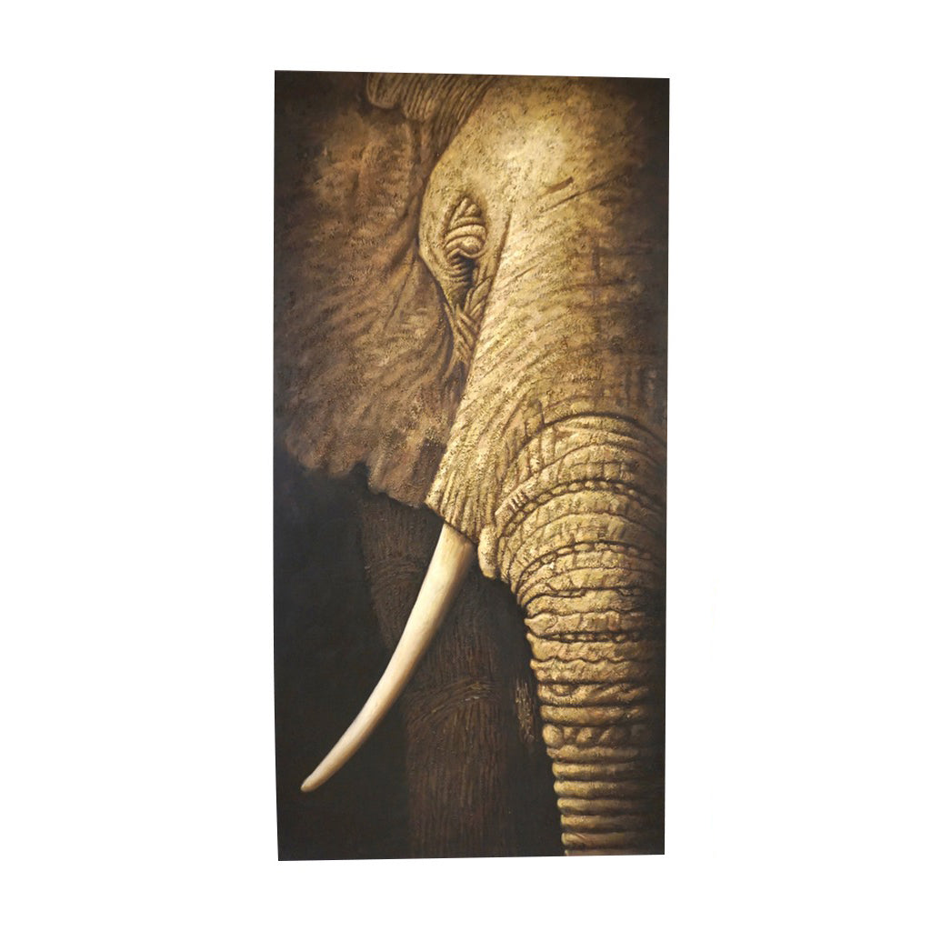 Contemporary Italian Life Size Oil Painting Panel of Elephant
