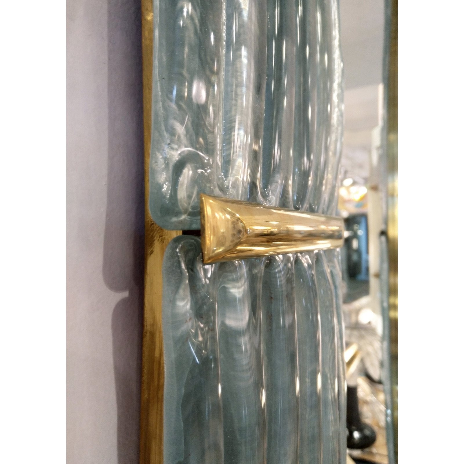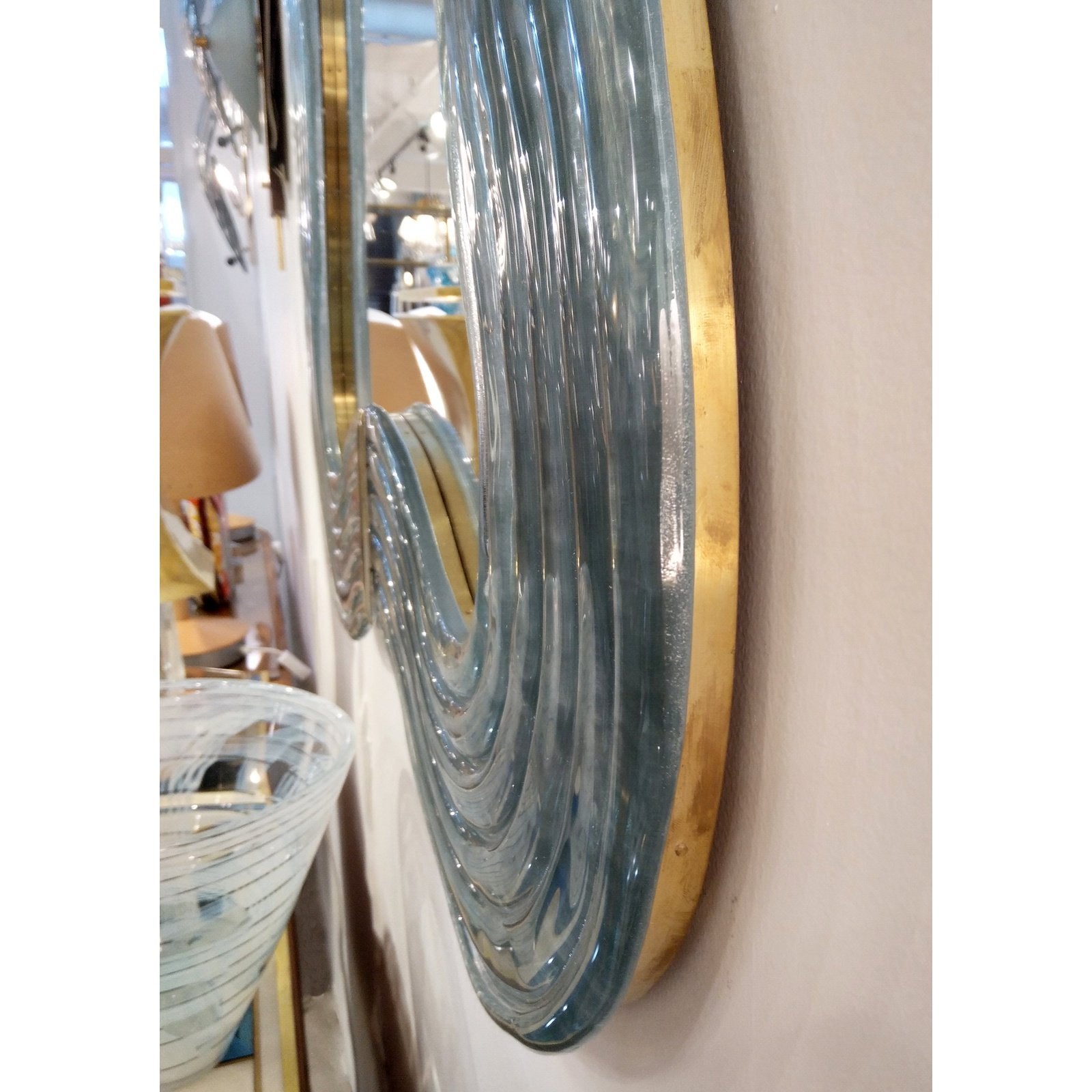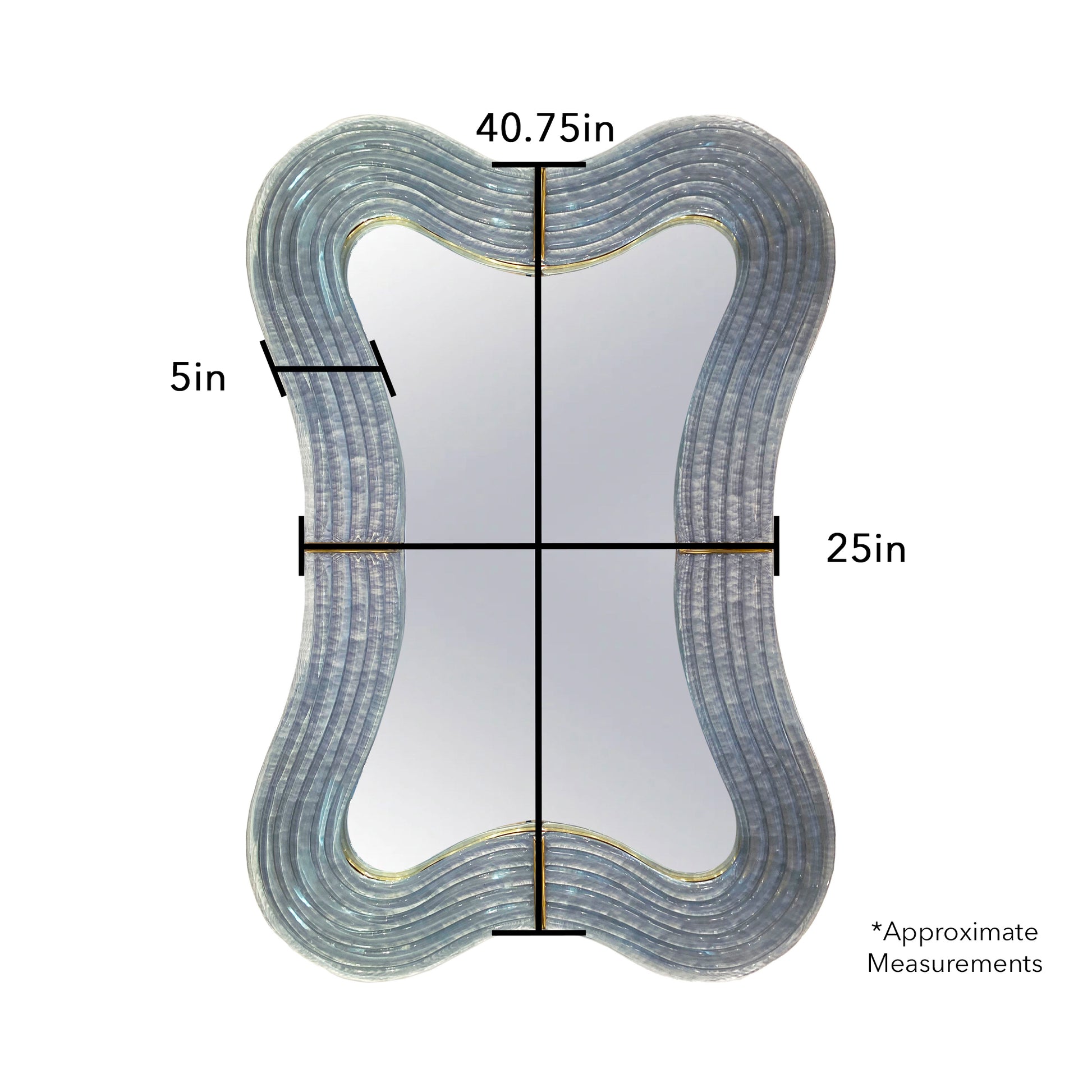 Contemporary Italian Pearl Gray Blue Murano Glass Curved Mirror & Brass Accents