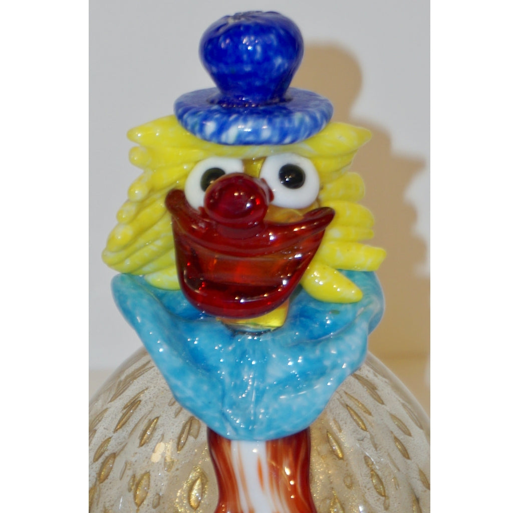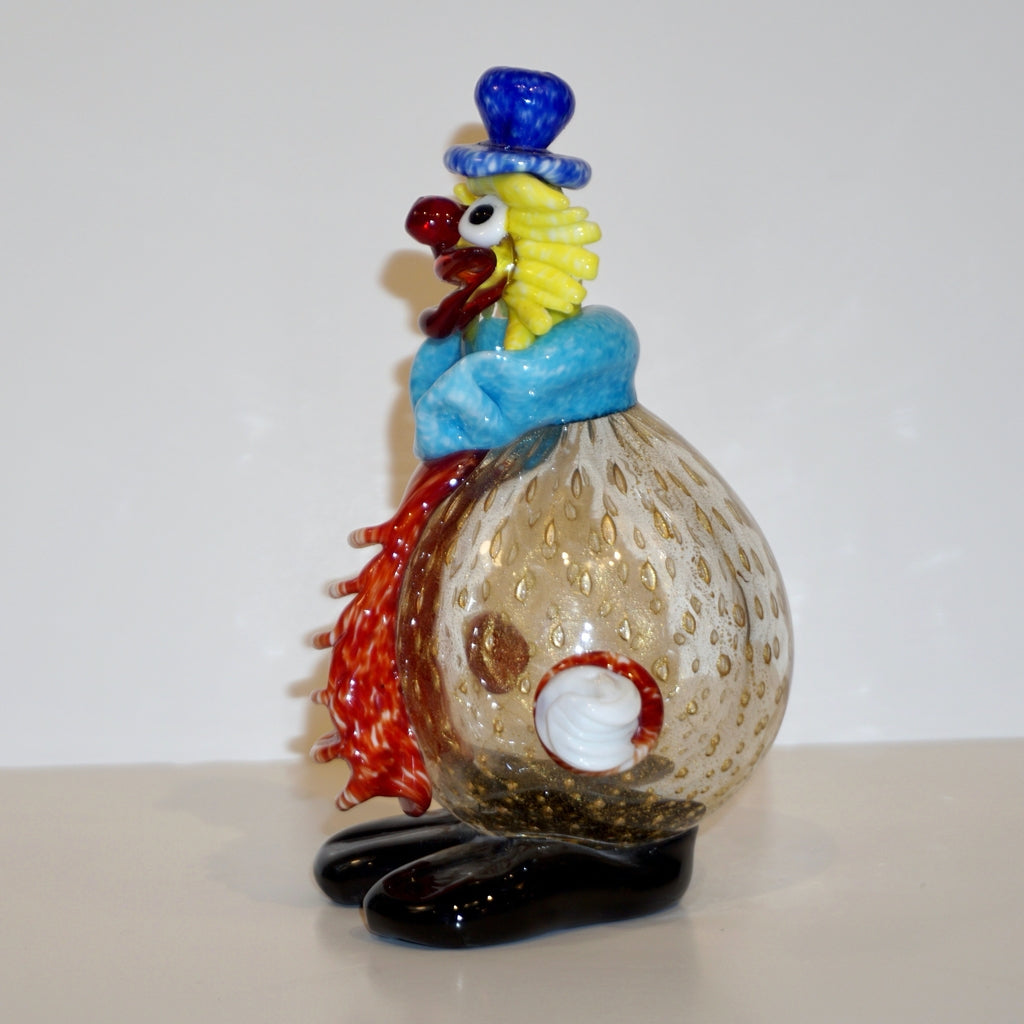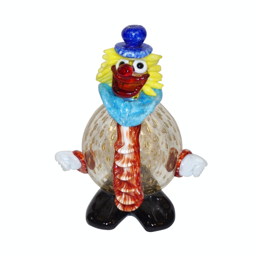 Contemporary Italian Red Amber Blue Murano Glass Clown Sculpture with Orange Tie