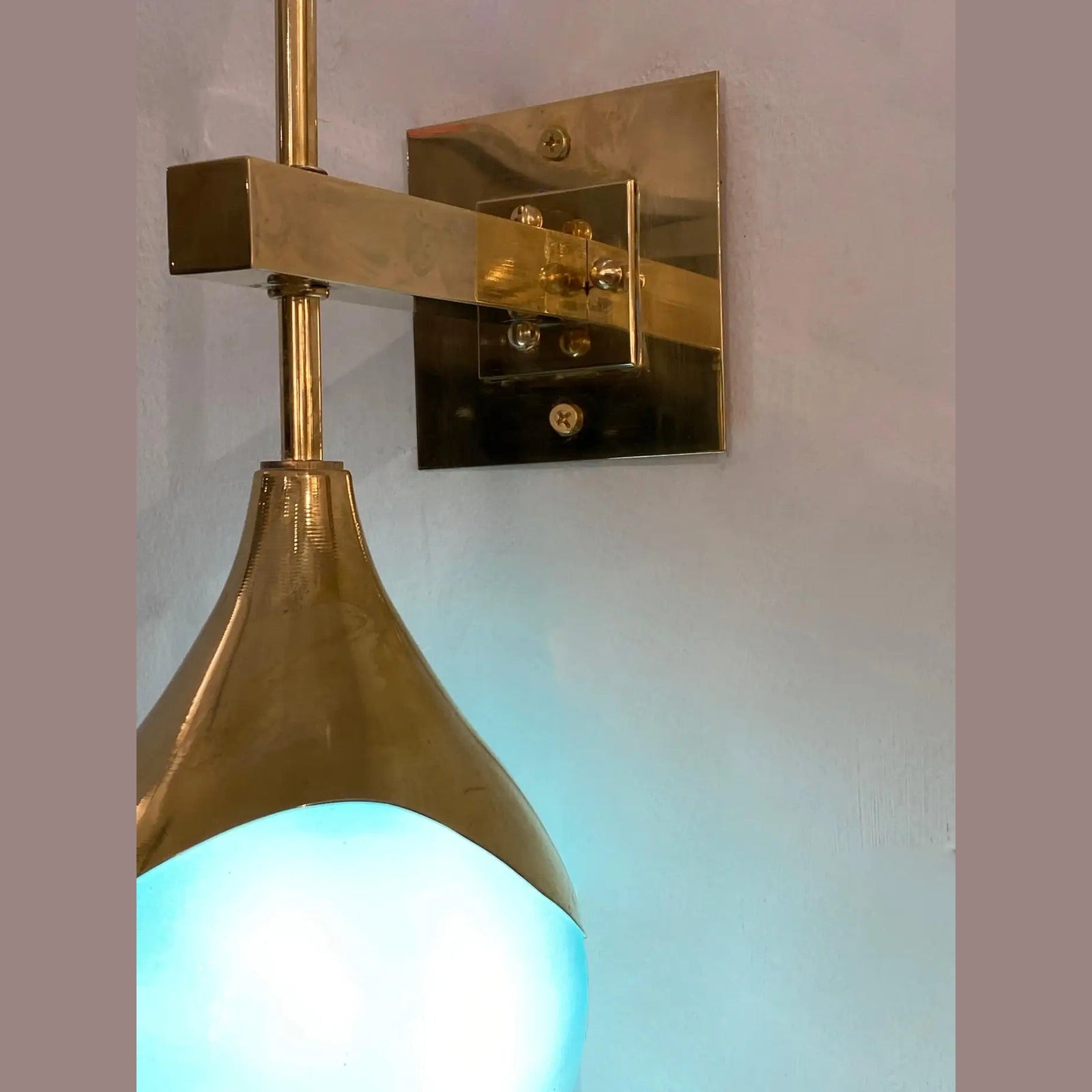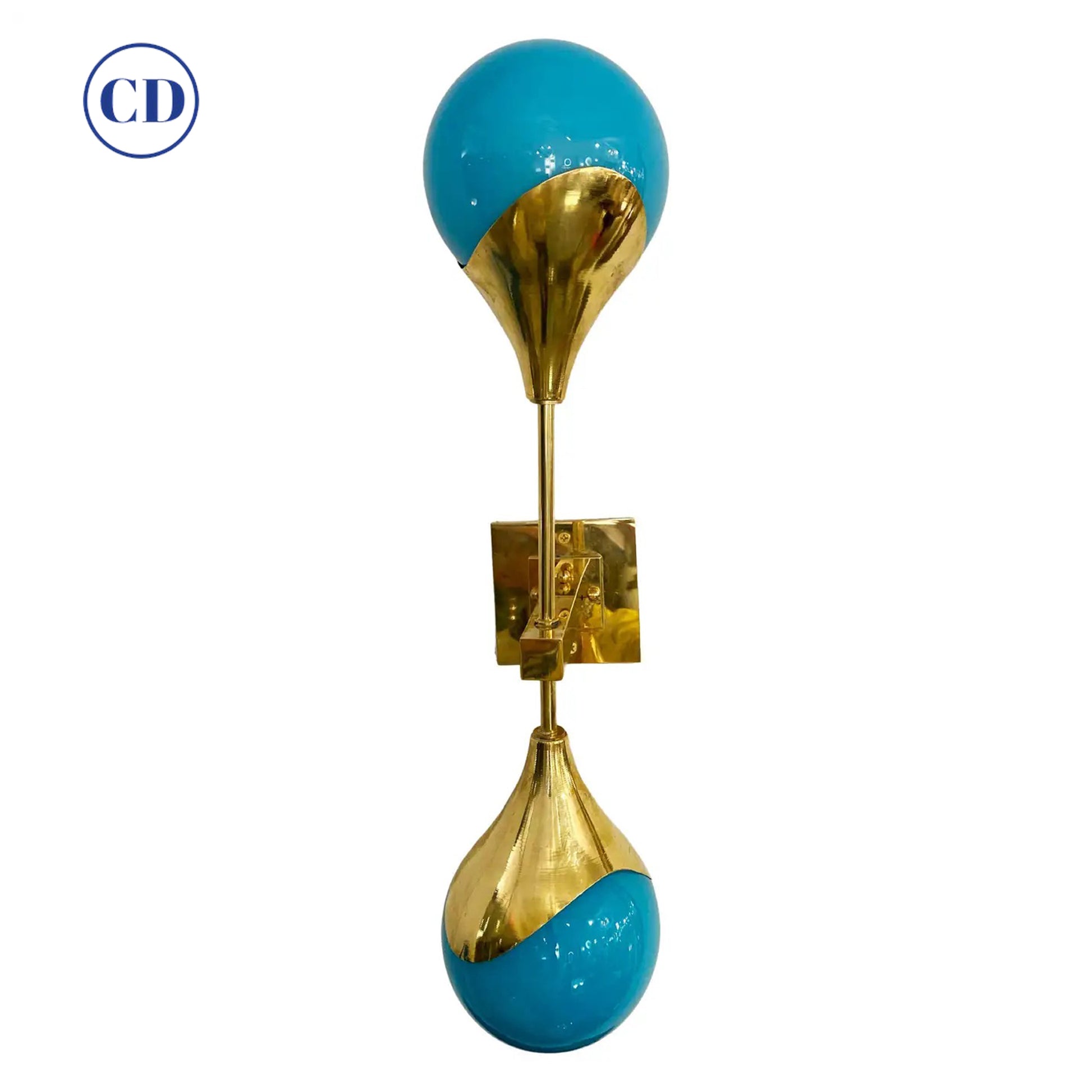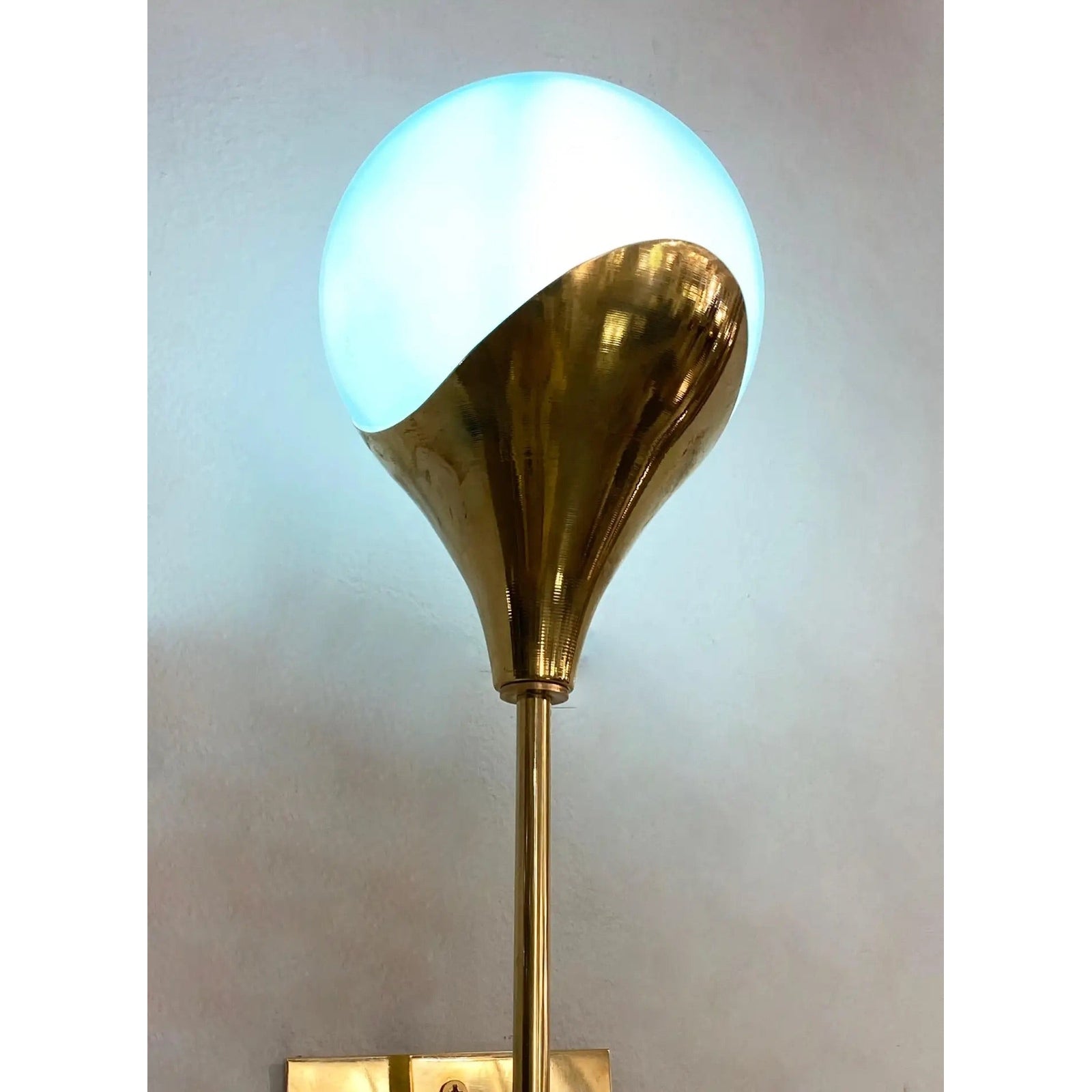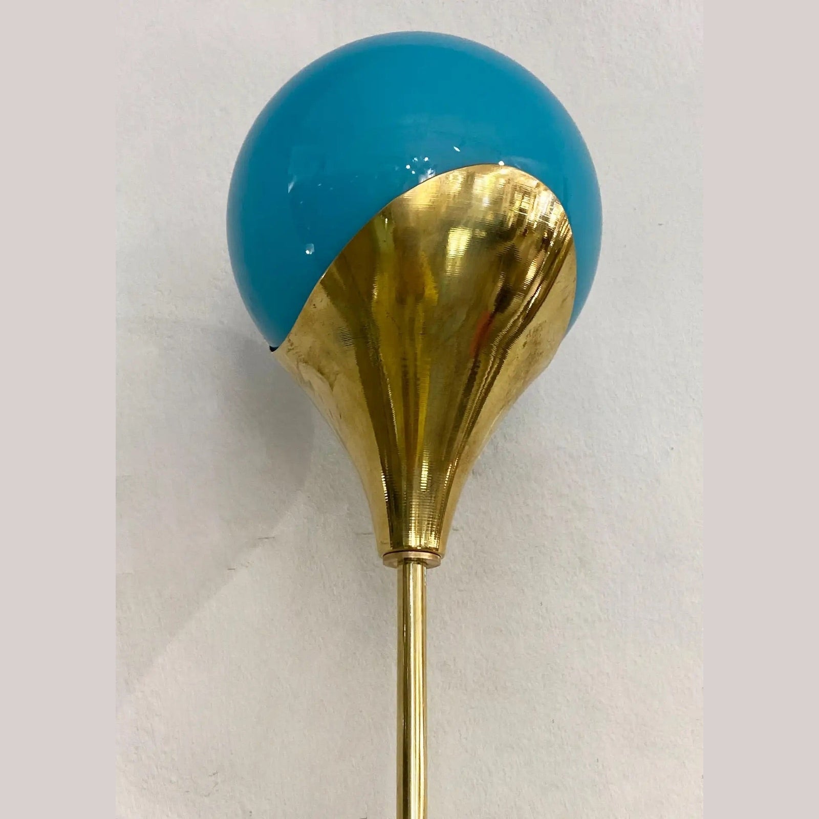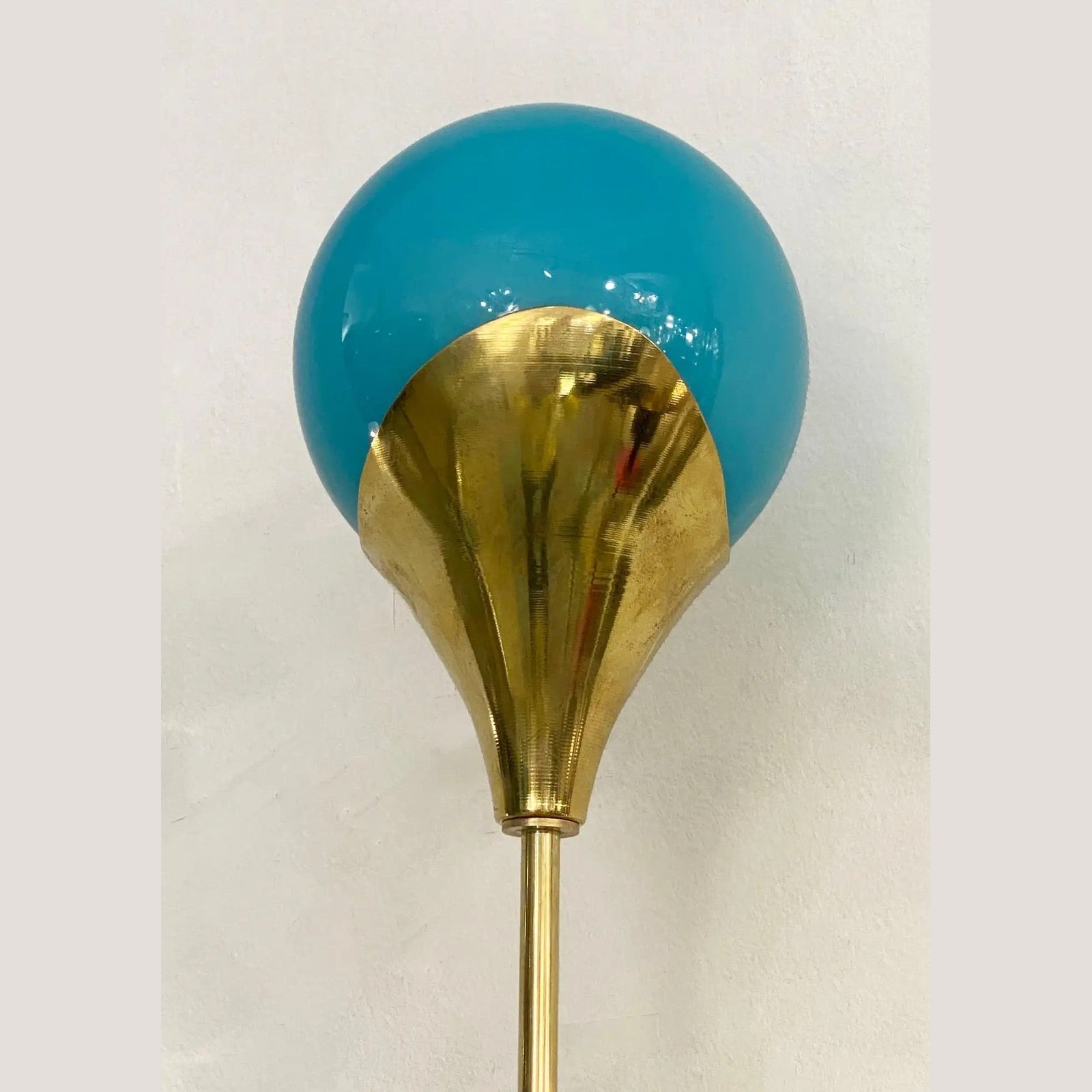 Contemporary Italian Single Two Globe Turquoise Murano Glass Brass Sconce