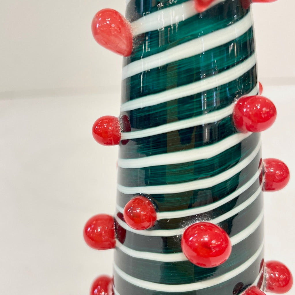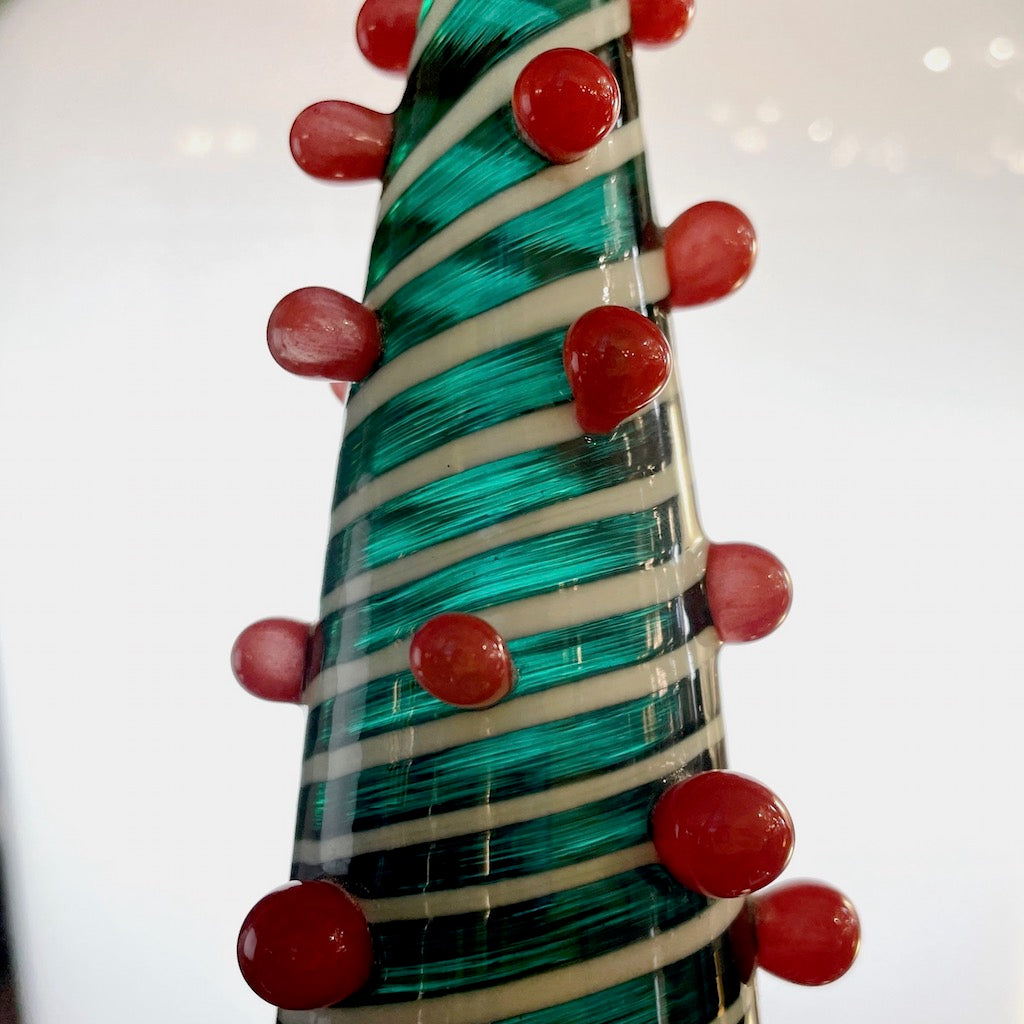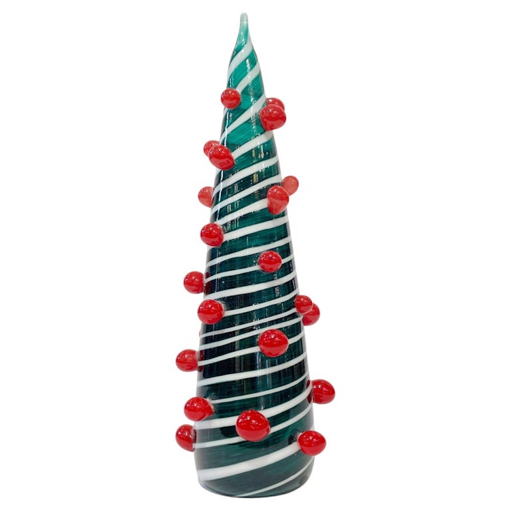 Contemporary Italian White Green Red Murano Glass Christmas Tree Cone Sculpture