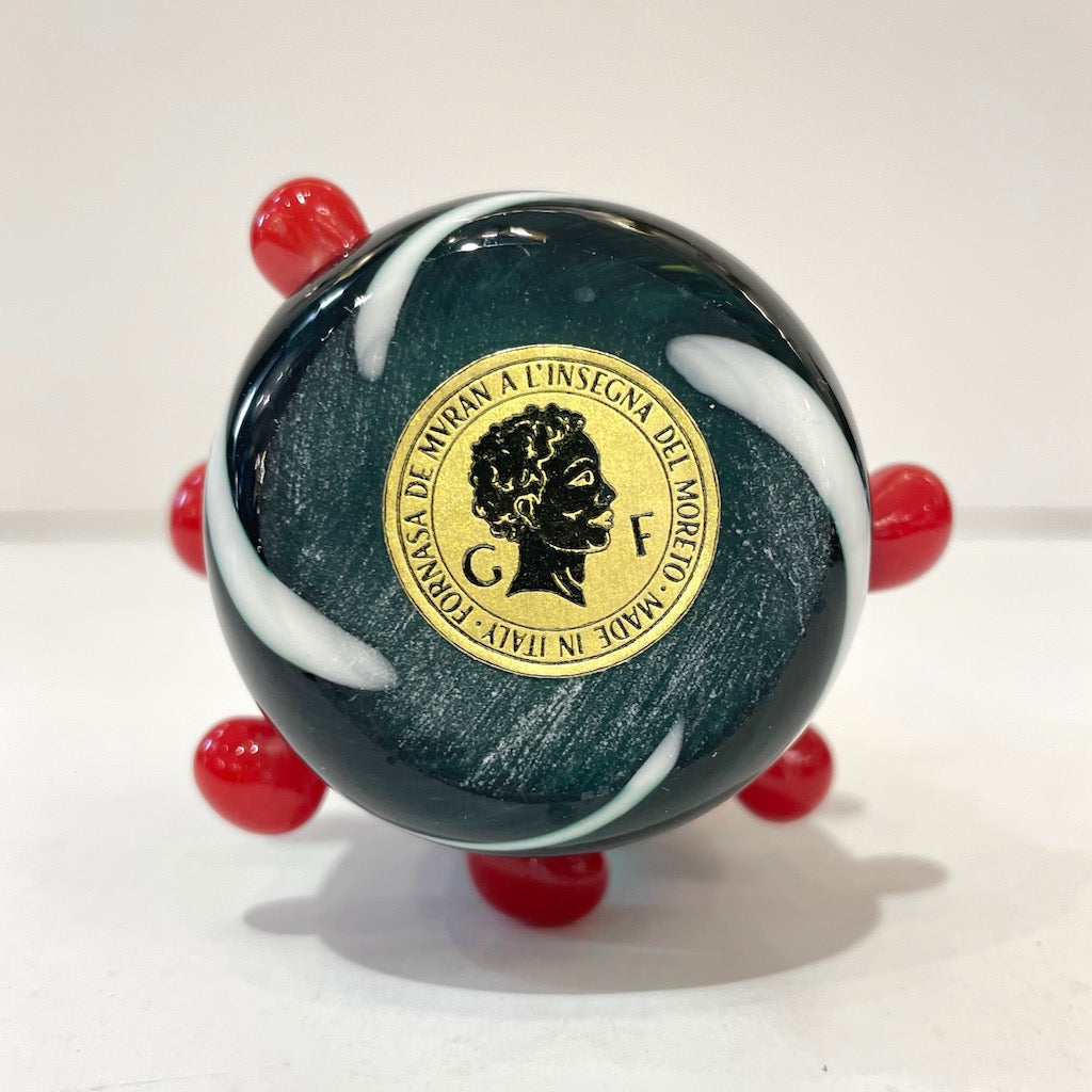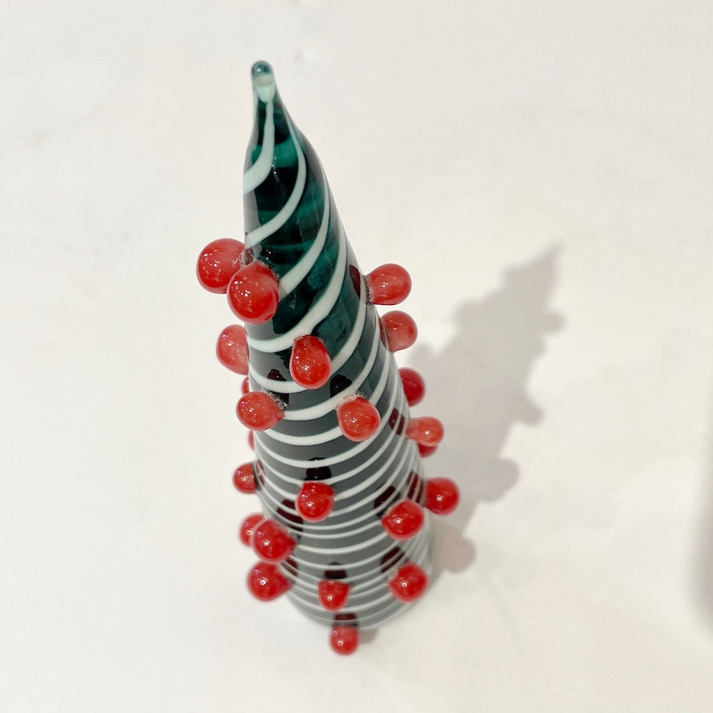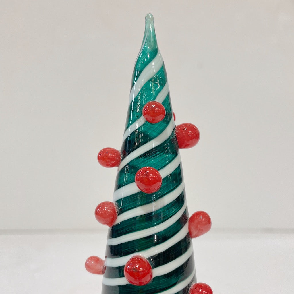 Contemporary Italian White Green Red Murano Glass Christmas Tree Cone Sculpture