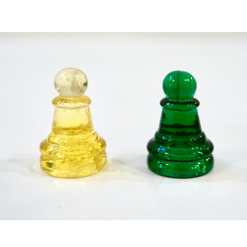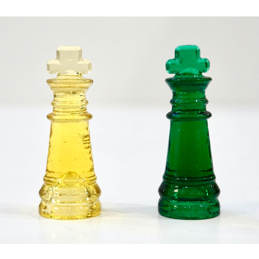 Contemporary Minimalist Green & Yellow Murano Glass Chess Set on Mirrored Board